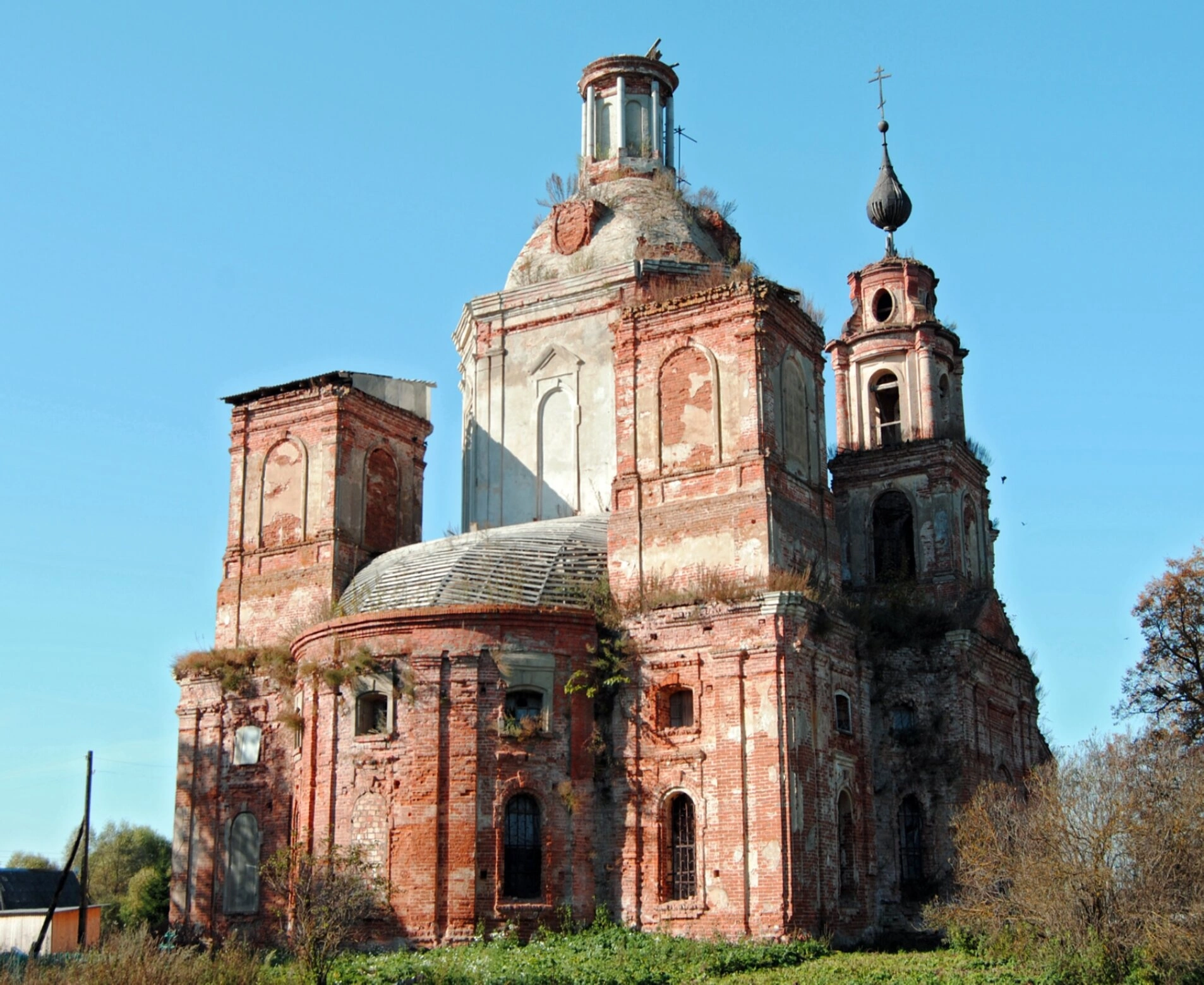 Нынешнее состояние храма вызывает глубокую скорбь. Здание интенсивно разрушается: полностью утрачена кровля, обвалились значительные фрагменты кирпичной кладки стен и сводов. Стены и остатки перекрытий густо поросли кустарником и деревьями, что усугубляет процесс разрушения. Храм стоит на открытой местности, окружённый полями и лугами, что подчёркивает его заброшенность и одиночество.