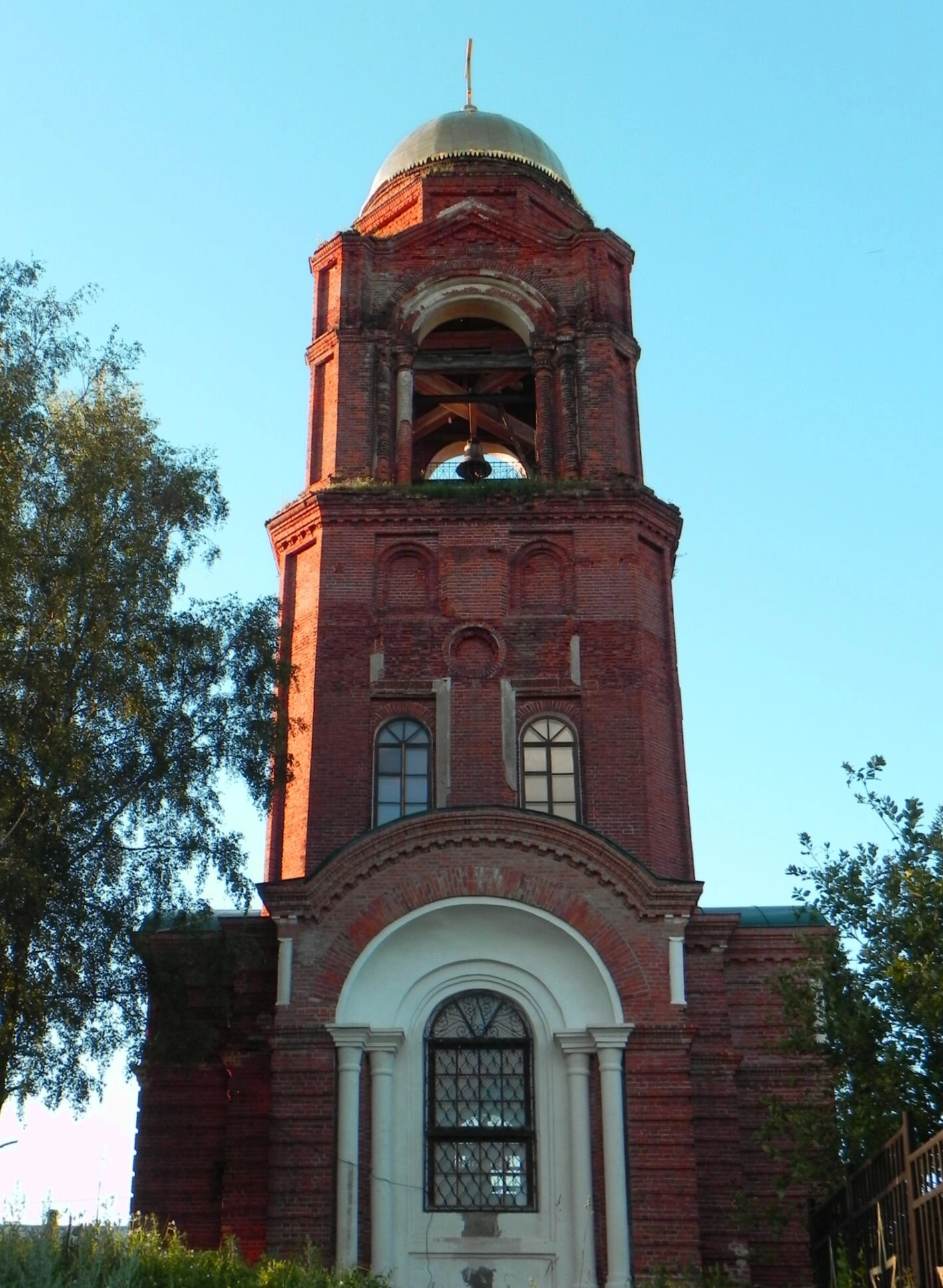 Каменный храм был возведён в 1866 году на средства благотворителей на месте обветшавшей деревянной церкви. Архитектура здания выдержана в русском стиле, характерном для периода эклектики. Основной объём храма завершается массивным световым барабаном, увенчанным луковичной главой, что символизирует молитвенное горение к Богу. С западной стороны к церкви примыкает шатровая колокольня, которая является композиционной доминантой всего сооружения.