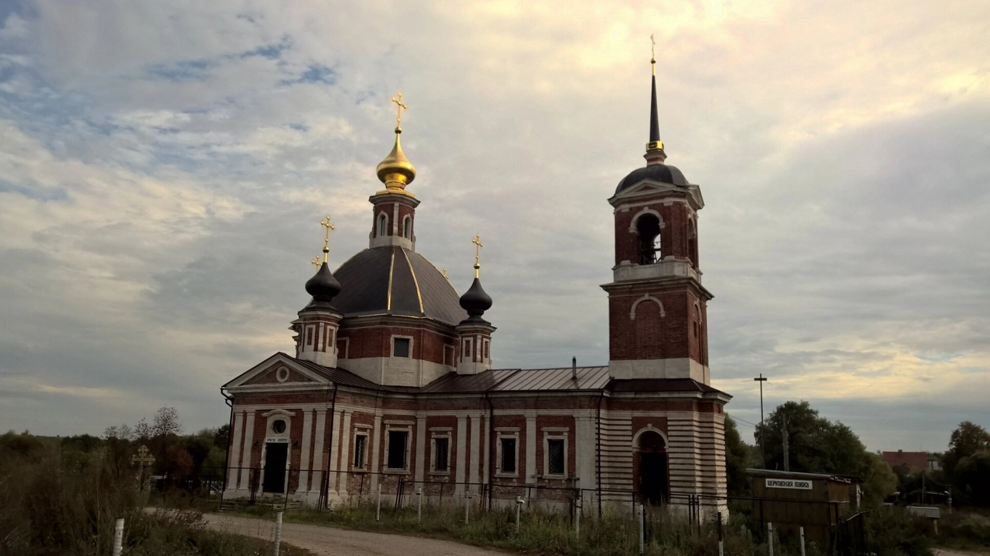Основной объём храма представляет собой прекрасный образец позднего барокко с характерными для этого стиля пышными формами и богатым декором. Здание сложено из красного кирпича с изящными белокаменными деталями, создающими выразительный цветовой контраст. Ярусная композиция храма увенчана несколькими чёрными куполами, которые завершаются златоглавыми главками с водружёнными на них православными крестами, сияющими в лучах небесного света.