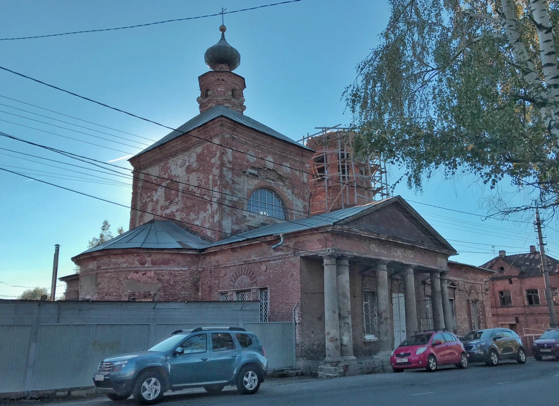 Внешний облик храма на снимке свидетельствует о его сложной судьбе. Кирпичные стены основного объема и колокольни, портик с четырьмя колоннами и треугольным фронтоном, а также купол с крестом являют взору благородную строгость. В то же время видимое обветшание фасада и наличие строительных лесов с правой стороны здания красноречиво говорят о продолжительном периоде забвения и начавшемся процессе возрождения. После закрытия в 1940 году и долгого использования не по назначению храм был возвращен Тульской епархии лишь в 2012 году. С тех пор силами прихожан и благотворителей в нем ведутся масштабные реставрационные работы, цель которых — вернуть святыне ее историческое благолепие.