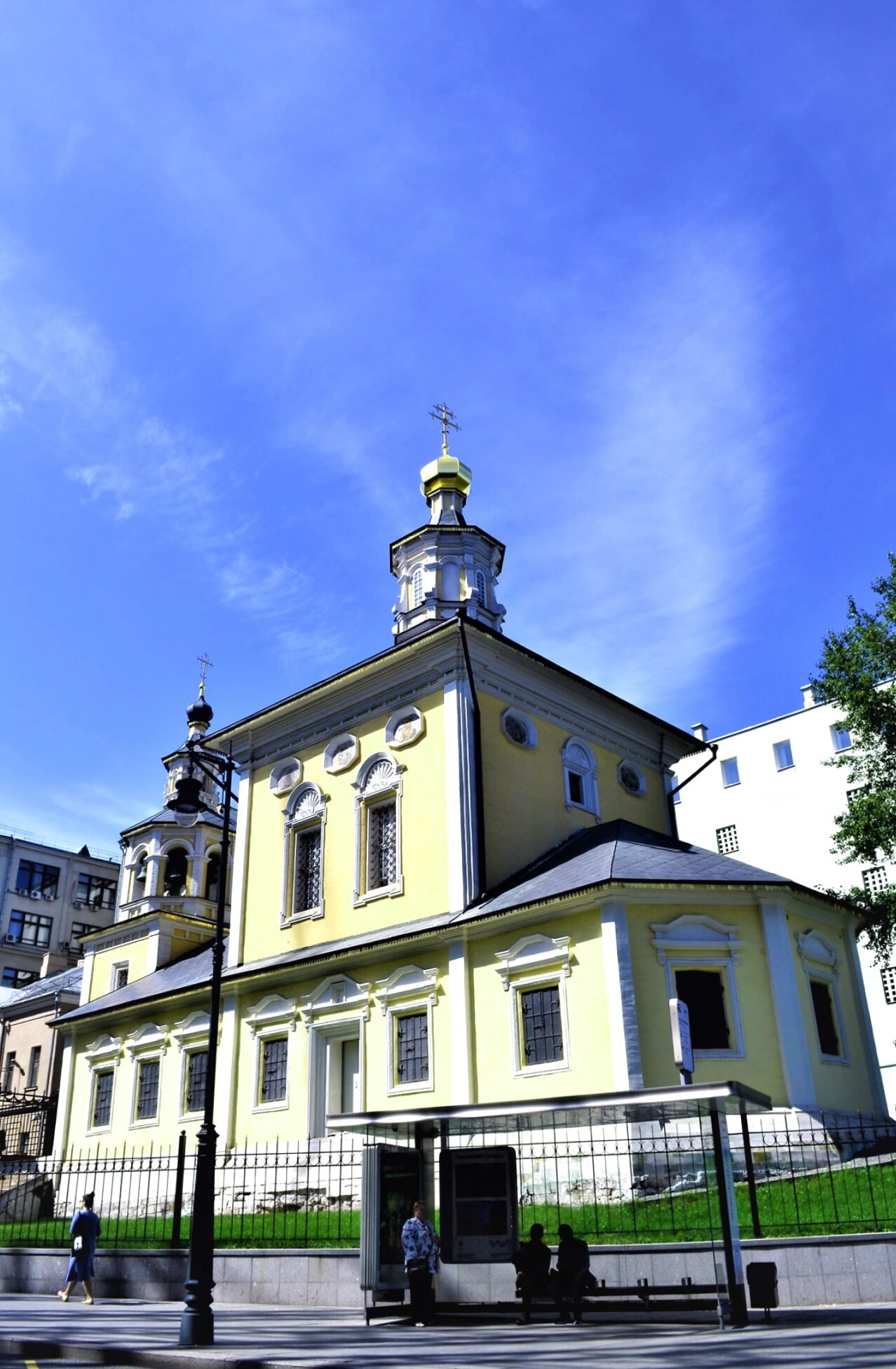 После разрушения в советское время стены Китай-города храм, ранее скрытый за крепостными укреплениями, открылся взорам москвичей и гостей столицы во всей своей красе. Его стройный силуэт, увенчанный главкой, и лаконичные формы являются характерным примером московского храмового зодчества. Фотография позволяет оценить скромное, но благородное убранство фасадов и гармоничные пропорции этого святого места, которое веками было неотъемлемой частью духовной панорамы древней Москвы.