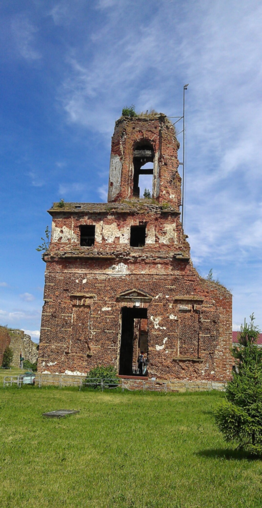 На снимке видны суровые последствия XX века: массивные кирпичные стены, лишённые кровли, зияющие проёмы окон и дверей, уцелевшие фрагменты колокольни. Эти повреждения являются следствием ожесточённых боёв Великой Отечественной войны, когда крепость героически оборонялась на протяжении почти 500 дней, не позволив врагу замкнуть кольцо блокады Ленинграда полностью.