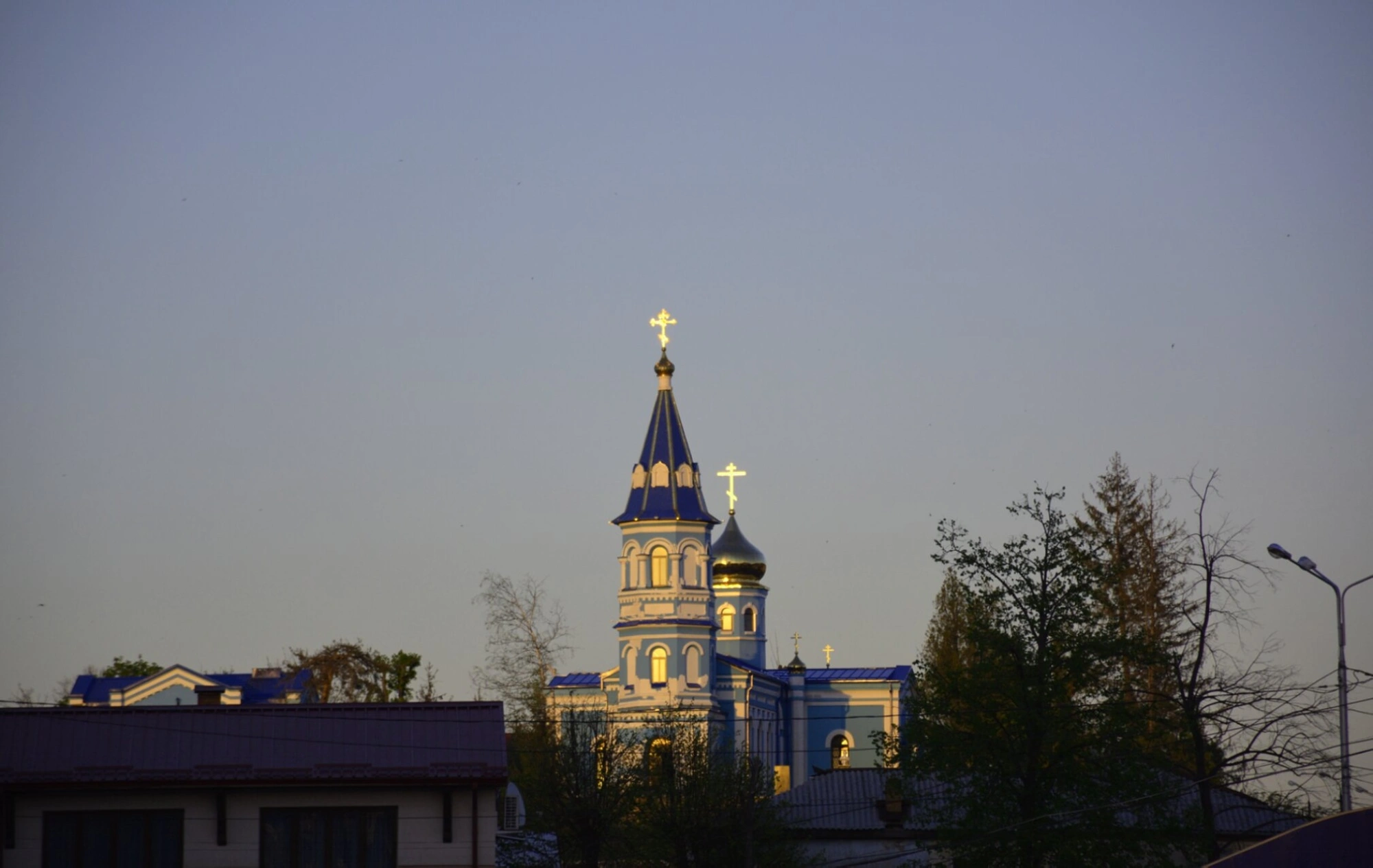 На фотографии запечатлён старейший православный храм Владикавказа — церковь в честь Рождества Пресвятой Богородицы, более известная среди горожан и паломников как Осетинская. Святыня возвышается на правом берегу реки Терек, исторически являясь духовным центром для осетинского народа и одним из символов города.