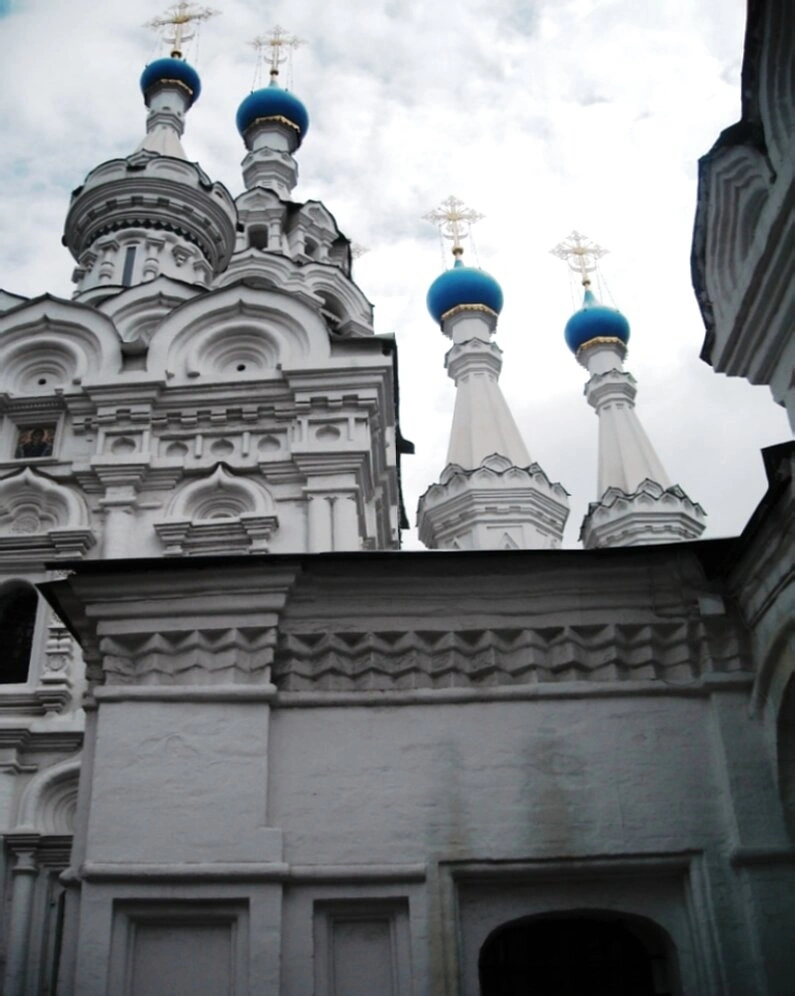 На представленной фотографии запечатлён храм Рождества Пресвятой Богородицы в Путинках, выдающийся памятник русской церковной архитектуры середины XVII века. Святыня расположена в историческом центре Москвы и является объектом культурного наследия федерального значения.