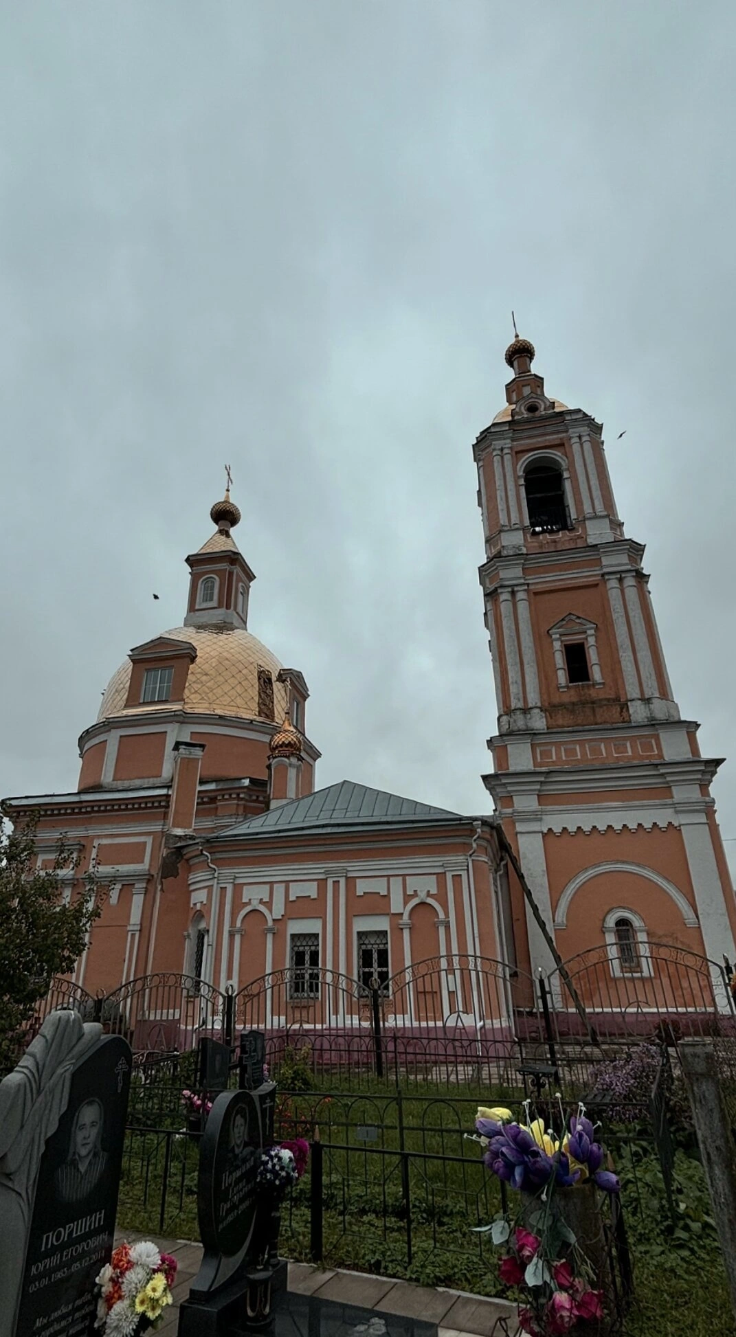 Церковь была возведена в 1761 году на средства благочестивого помещика Феодора Иоанновича Наумова. Архитектурное решение храма представляет собой яркий пример барокко в церковном зодчестве Центральной России. Желтые стены гармонично сочетаются с белоснежными декоративными элементами, создавая торжественный образ. Ансамбль состоит из основного объема, увенчанного златыми куполами, и стройной колокольни, построенной в 1836 году.
