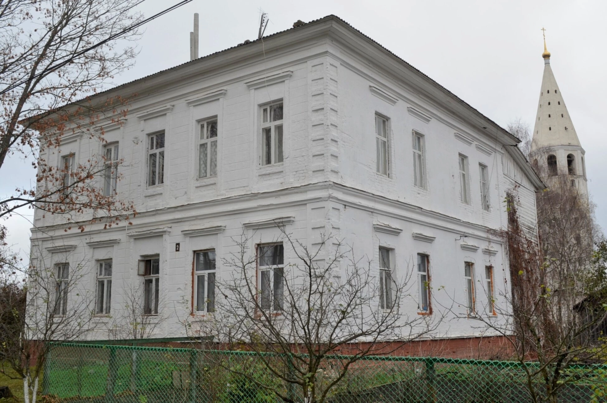 На представленной фотографии запечатлён храм в честь Рождества Пресвятой Богородицы, расположенный в селе Некрасовское Ярославской области. Святыня представляет собой архитектурный ансамбль, состоящий из двухэтажного основного здания и высокой колокольни.