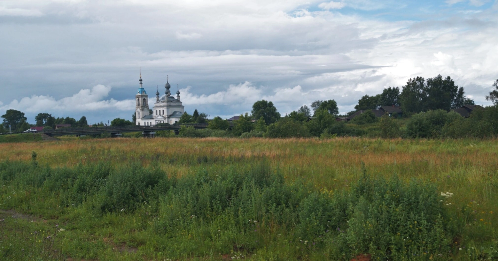На представленной фотографии запечатлён живописный вид на православную святыню Ярославской земли – Церковь Рождества Пресвятой Богородицы, что расположена в селе Савинское. Храм гармонично вписан в окружающий природный ландшафт, создавая единение творения рук человеческих и Божьего мира.