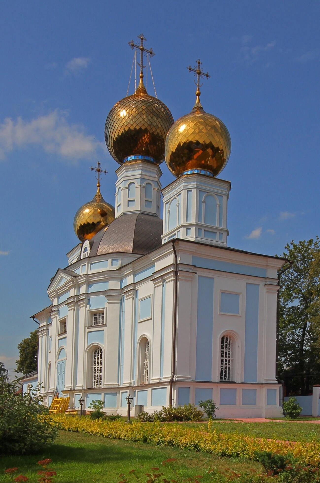 Белокаменный храм с голубыми элементами декора является ярким образцом православной церковной архитектуры. Здание венчают несколько золочёных куполов, увенчанных священными крестами, которые сияют под лучами солнца в ясный день. Светлые стены церкви создают ощущение благодати и чистоты.