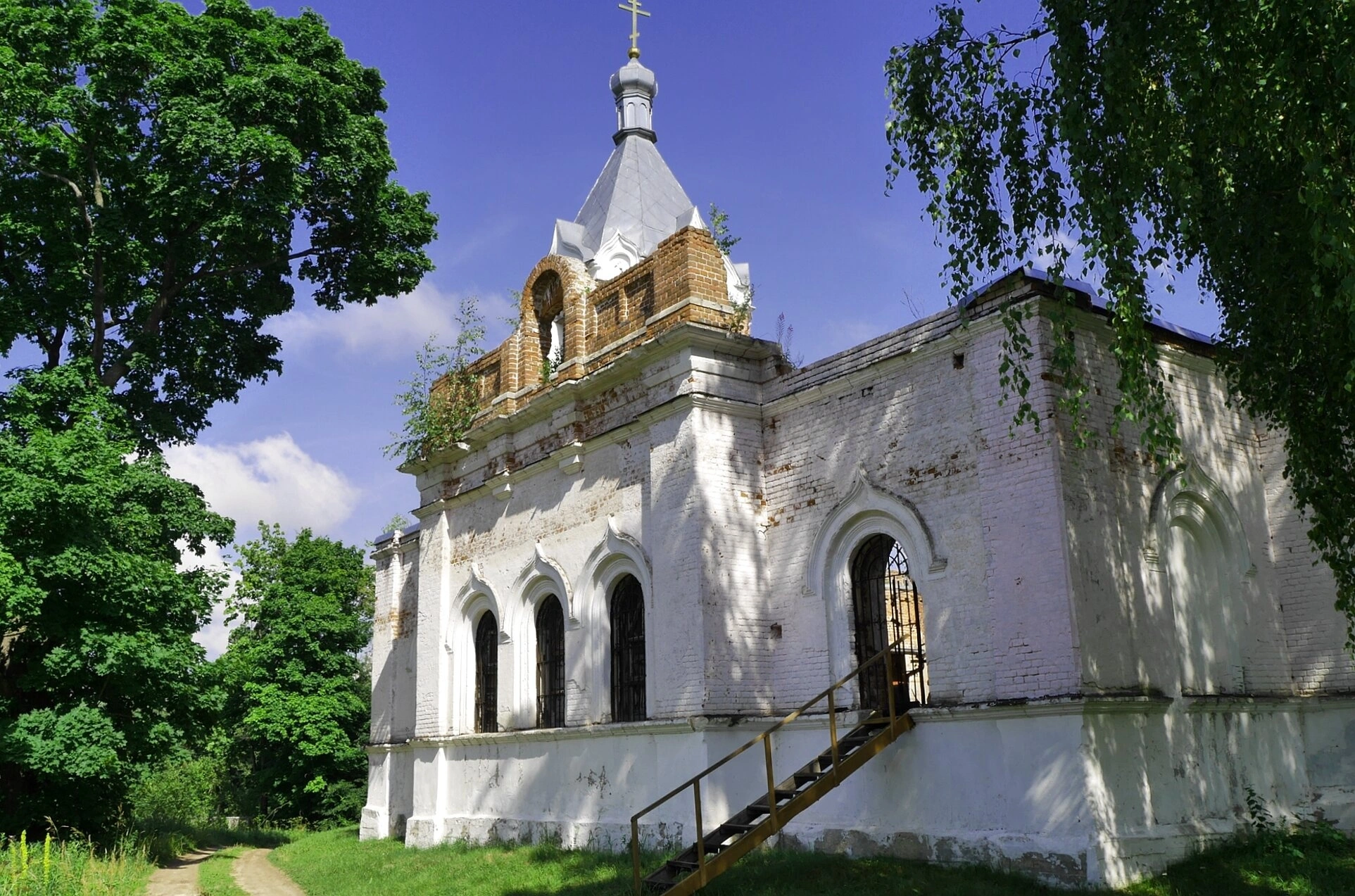 Храм живописно окружён природой. С одной стороны его обрамляют высокие деревья с пышной кроной, с другой — склоняются ветви плакучей ивы. Густая трава и грунтовая тропинка, ведущая к церкви, подчёркивают ощущение забвения и оторванности от мира. Ясный день и голубое небо на заднем плане создают контраст с печальным состоянием святого места, напоминая о былой красоте и духовном назначении этого дома Божьего.