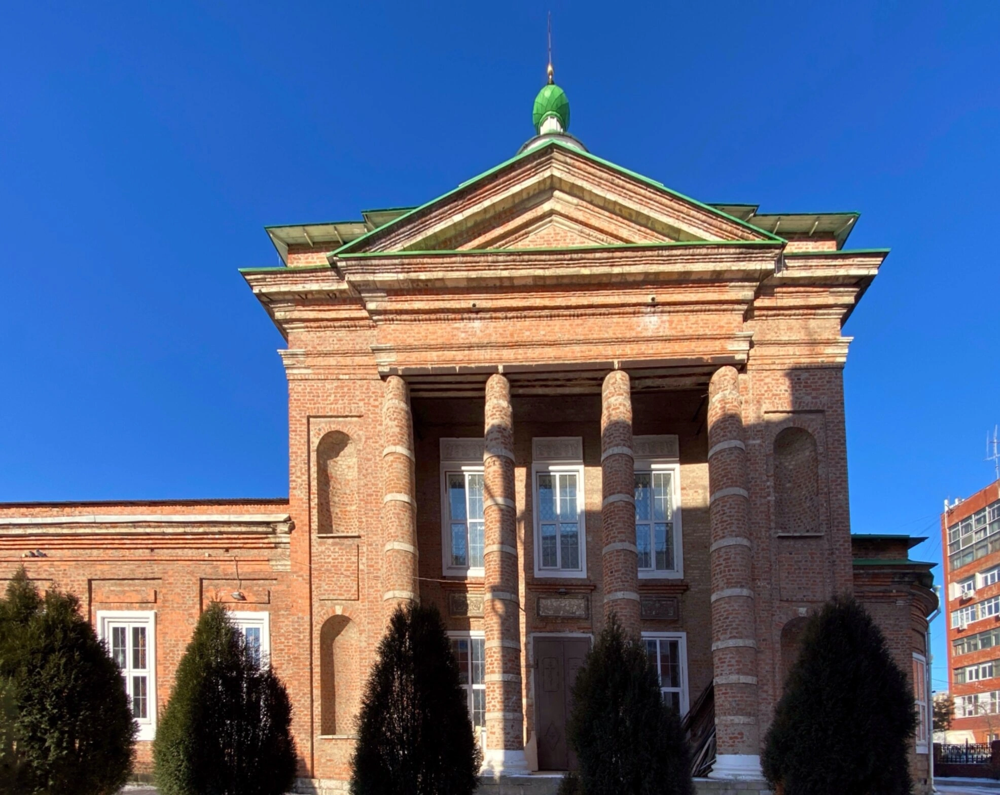 Храм отличается строгой красотой и гармонией форм. Его композицию венчает массивный зеленый купол, установленный на высоком световом барабане. Главный фасад украшает монументальный портик с белоснежными колоннами коринфского ордера и треугольным фронтоном, что придает всему облику здания торжественность и величие.