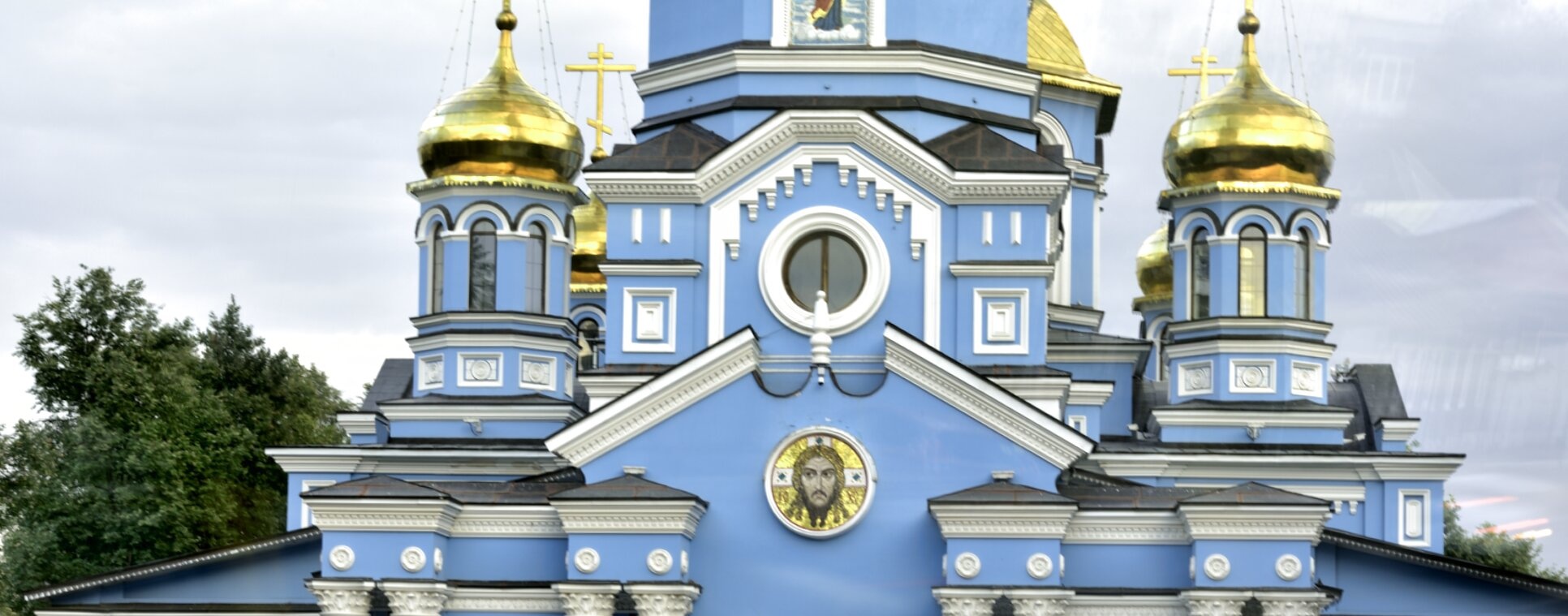 Венчают здание золочёные купола, сияющие в лучах солнца и являющие собой образ света Христова, просвещающего мир. На их вершинах гордо возвышаются православные кресты — символы спасения и искупительной жертвы Спасителя. Под центральным окном лика святых, размещённых на фасаде, внимают молитвам верующих.