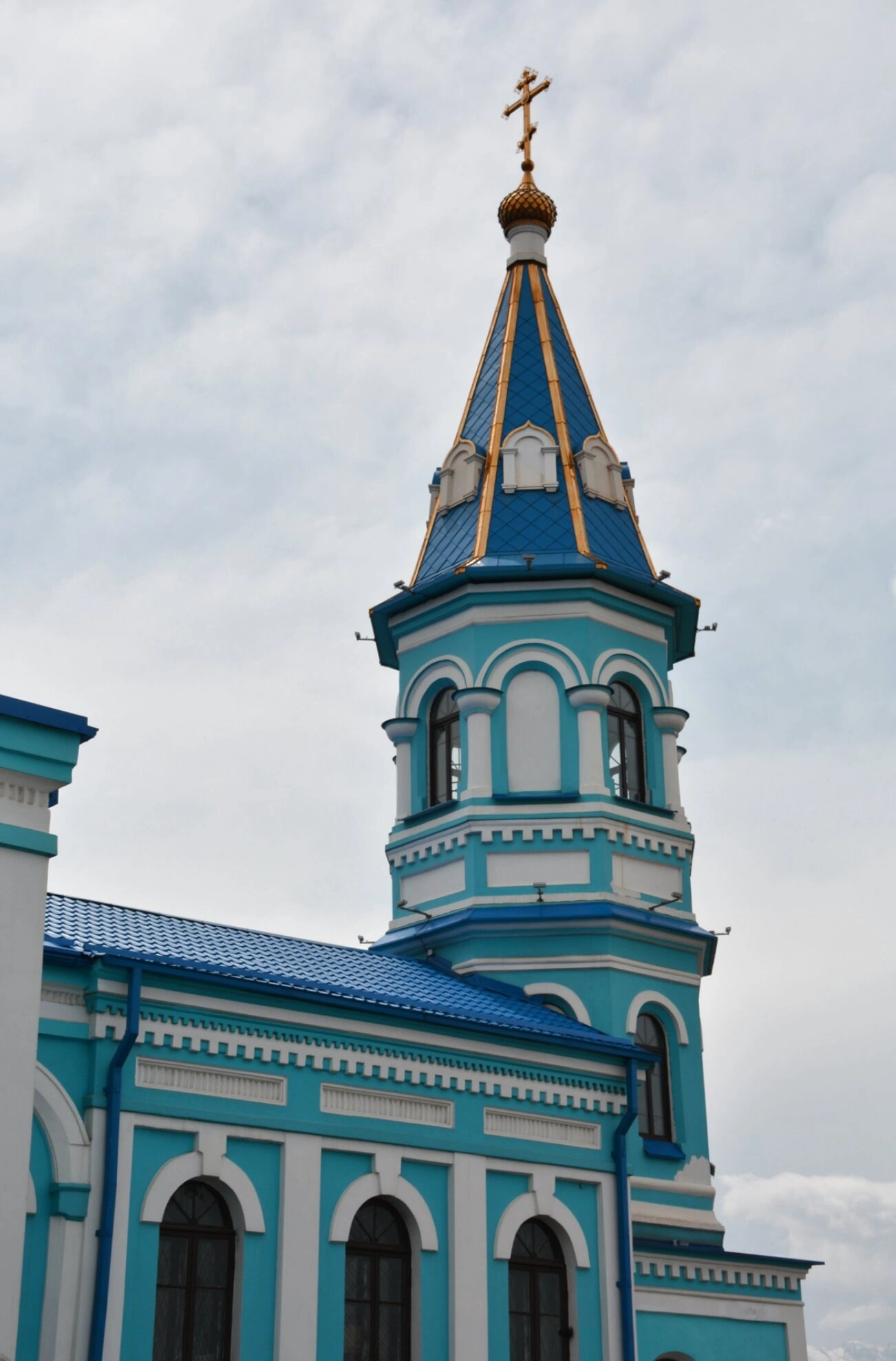 Белоснежный храм с небесно-голубыми куполами и изящной шатровой колокольней представляет собой уникальный для Северного Кавказа образец русской церковной архитектуры. Его стройный силуэт и лаконичные формы создают образ духовной чистоты и величия, гармонично вписываясь в городской пейзаж столицы Северной Осетии.
