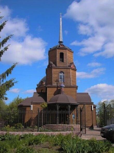 На представленной фотографии запечатлён храм во имя праведного Симеона Верхотурского, расположенный в городе Уфе. Святыня, возведённая из дерева, является образцом церковного зодчества и духовным центром для православных верующих. Архитектурный облик храма отличает высокий стройный шпиль, увенчанный православным крестом, и лаконичный купол, что создаёт устремлённый ввысь, грациозный силуэт, символизирующий молитвенное горение к Богу.