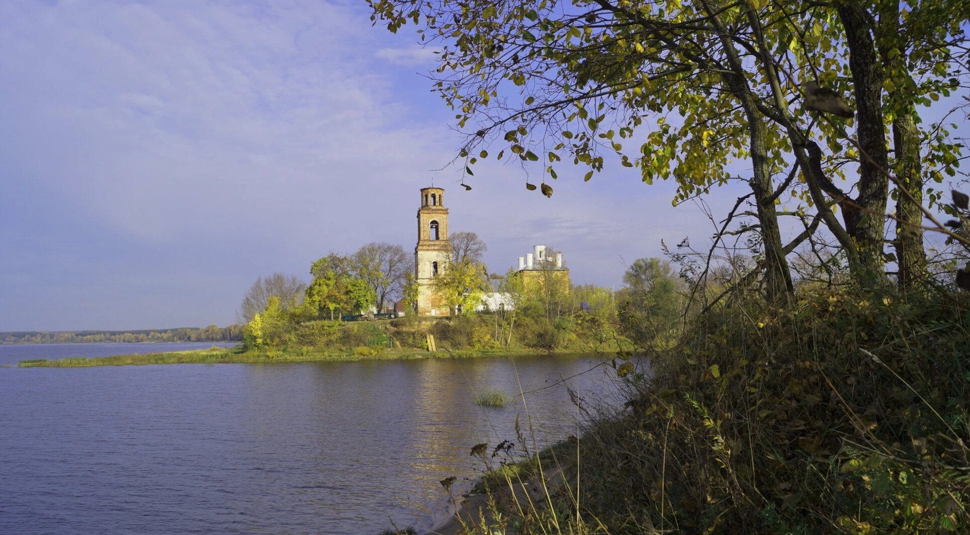 Фотография позволяет оценить величественный облик храма, его удачное расположение на берегу Волги и ту особую благодатную атмосферу, которая присуща православным святыням Русской земли.