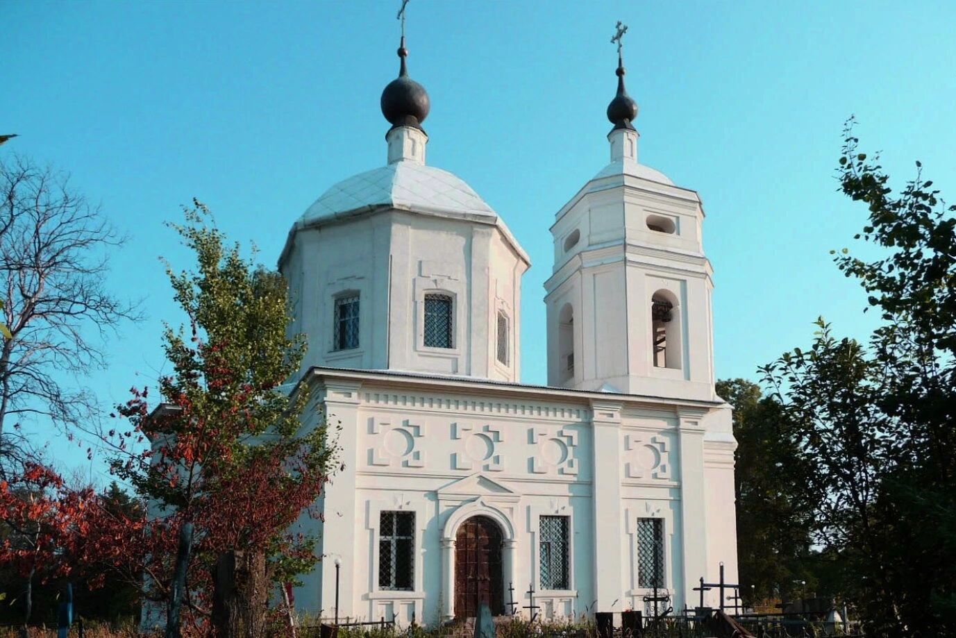 Каменная церковь была построена в 1785 году на средства местного помещика, коллежского асессора Петра Ивановича Львова. Храм представляет собой характерный для русского зодчества того периода тип «восьмерик на четверике», увенчанный мощным световым барабаном с луковичной главкой. С западной стороны к основному объёму примыкает трапезная и трёхъярусная колокольня со шпилем, завершённым крестом.