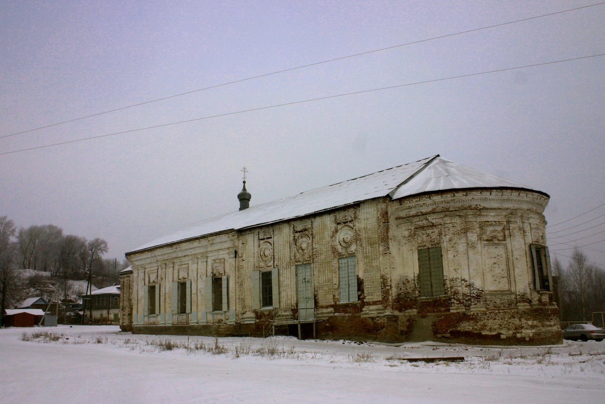 Фасад украшают пилястры и наличники сложной формы, что свидетельствует о мастерстве зодчих. Несмотря на следы времени, читаемые в обнажённой кирпичной кладке у основания, храм сохраняет своё духовное и историческое достоинство. Окружающий пейзаж с заснеженными просторами и деревьями в инее усиливает ощущение уединённости и отрешённости от суетного мира.