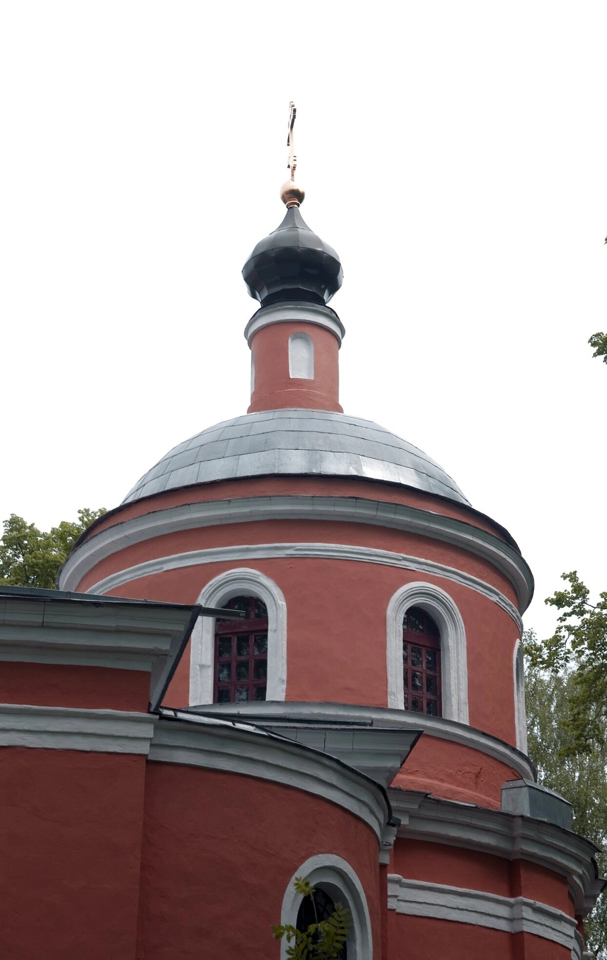 В центре композиции возвышается массивный купол, окрашенный в тёплый охристый цвет, над которым расположен световой барабан, увенчанный изящной луковичной главкой. Главка, выкрашенная в тёмный цвет, контрастирует с сияющим позолотой восьмиконечным православным крестом, устремлённым в небеса. Крест символизирует искупительную жертву Спасителя и является главным символом христианской веры.