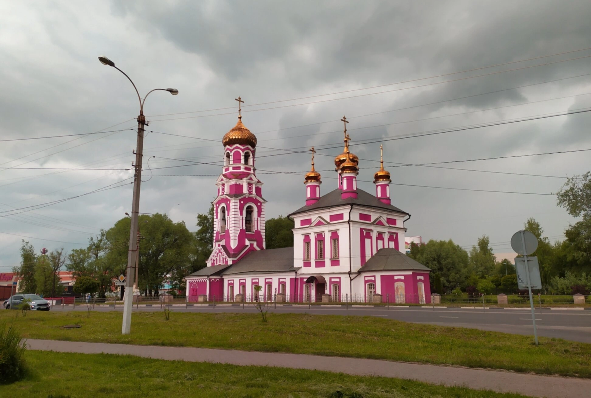 На представленной фотографии запечатлён величественный православный храм — Церковь Сретения Господня, находящаяся в древнем городе Дмитрове Московской области. Святыня располагается в микрорайоне Новь, на живописном правом берегу реки Березовец, на пересечении улиц Профессиональной и Оборонной.