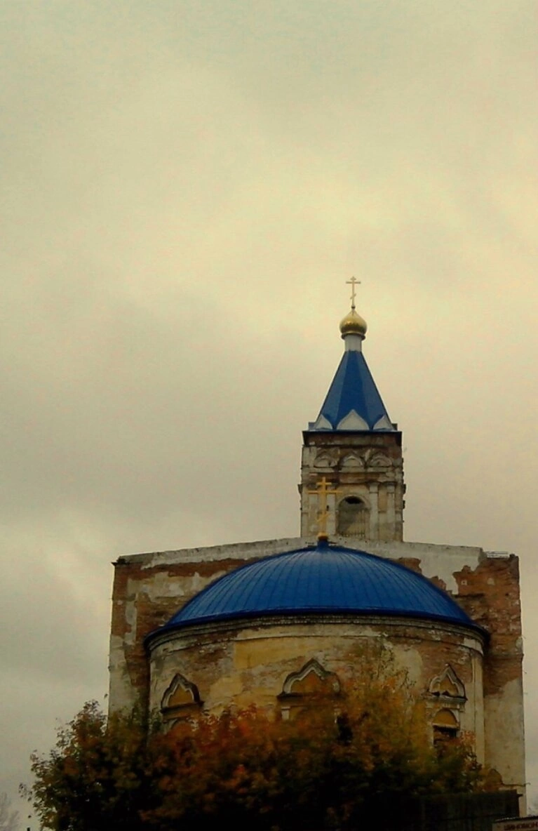 Фасад здания показывает следы времени, что свидетельствует о его почтенном возрасте и нужде в бережной реставрации. Осенние деревья с золотистой листвой, окружающие церковь, создают особую лирическую атмосферу, подчёркивая умиротворённость и духовную значимость этого места. Пасмурное небо на фоне добавляет фотографии драматизма и глубины.
