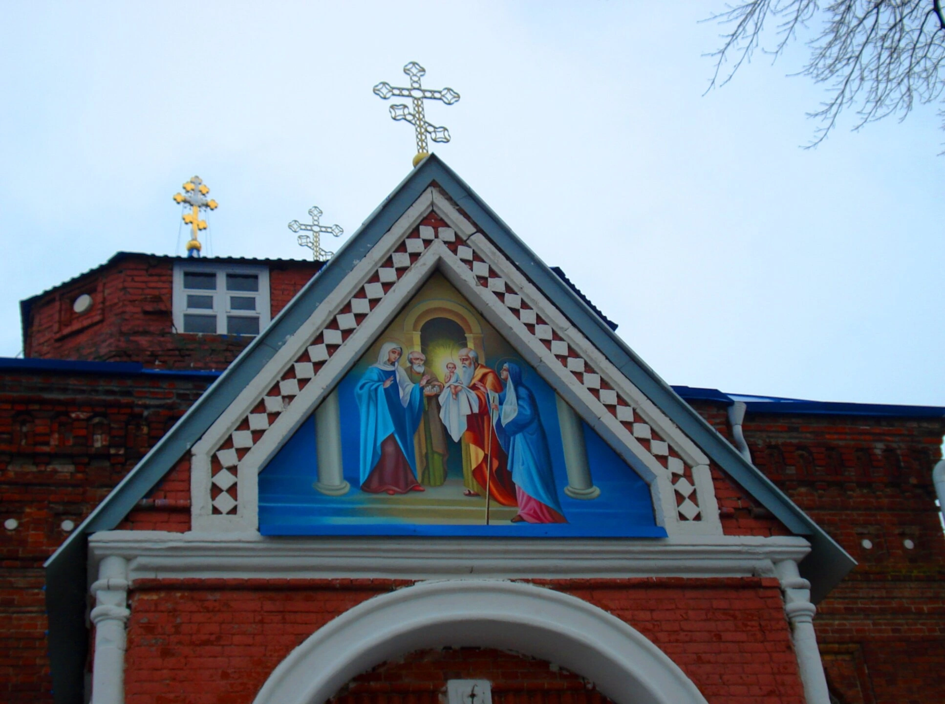 Венчают храм традиционные православные кресты, установленные как на основной кровле, так и на вершине фронтона, что подчёркивает сакральное назначение сооружения. Церковь была построена в 1898 году и освящена в честь одного из двунадесятых праздников — Сретения Господня. За свою более чем столетнюю историю храм пережил периоды закрытия и запустения в советские годы, но впоследствии был возвращён Русской Православной Церкви и полностью восстановлен.