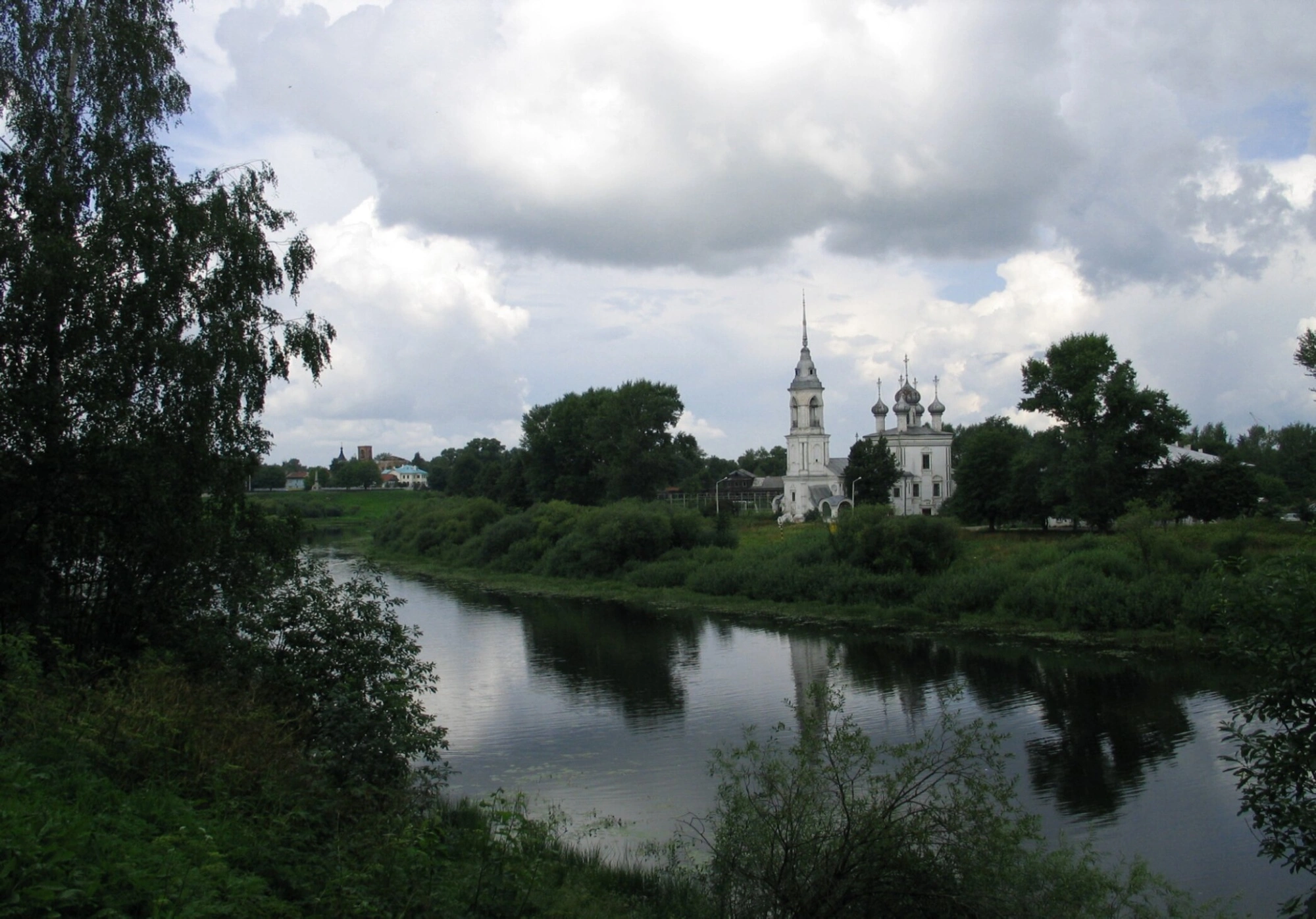 Расположение храма на берегу реки придаёт ему особую живописность и делает его одной из узнаваемых доминант города. Спокойное водное зеркало, в котором отражается благодатный образ церкви, добавляет пейзажу духовной глубины и величия, напоминая о необходимости quietude и молитвенного созерцания.