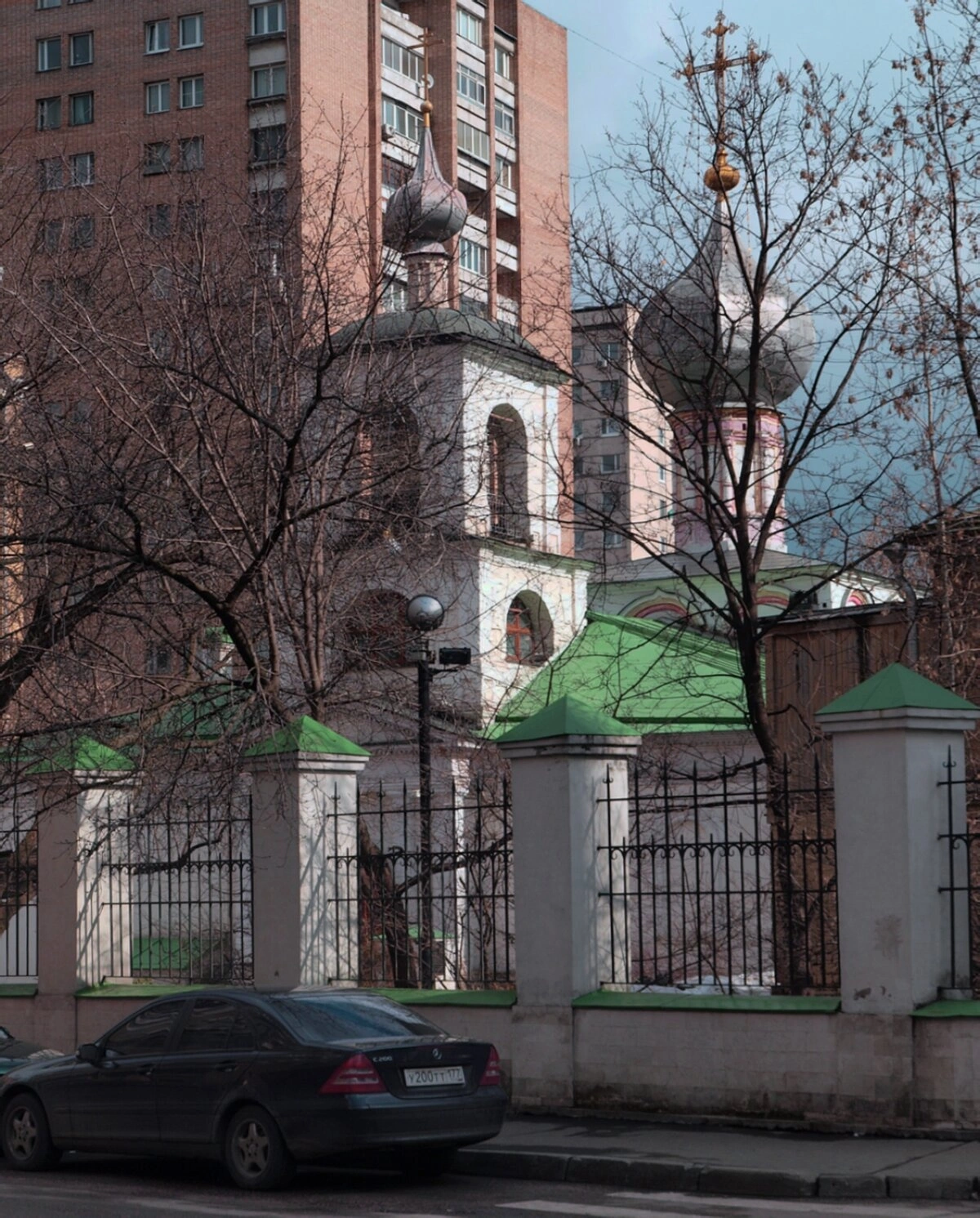 На представленной фотографии запечатлён храм Священномученика Власия, епископа Севастийского, расположенный в историческом районе Москвы — Старой Конюшенной слободе. Святыня является неотъемлемой частью православного наследия столицы и архитектурной доминантой Гагаринского переулка.