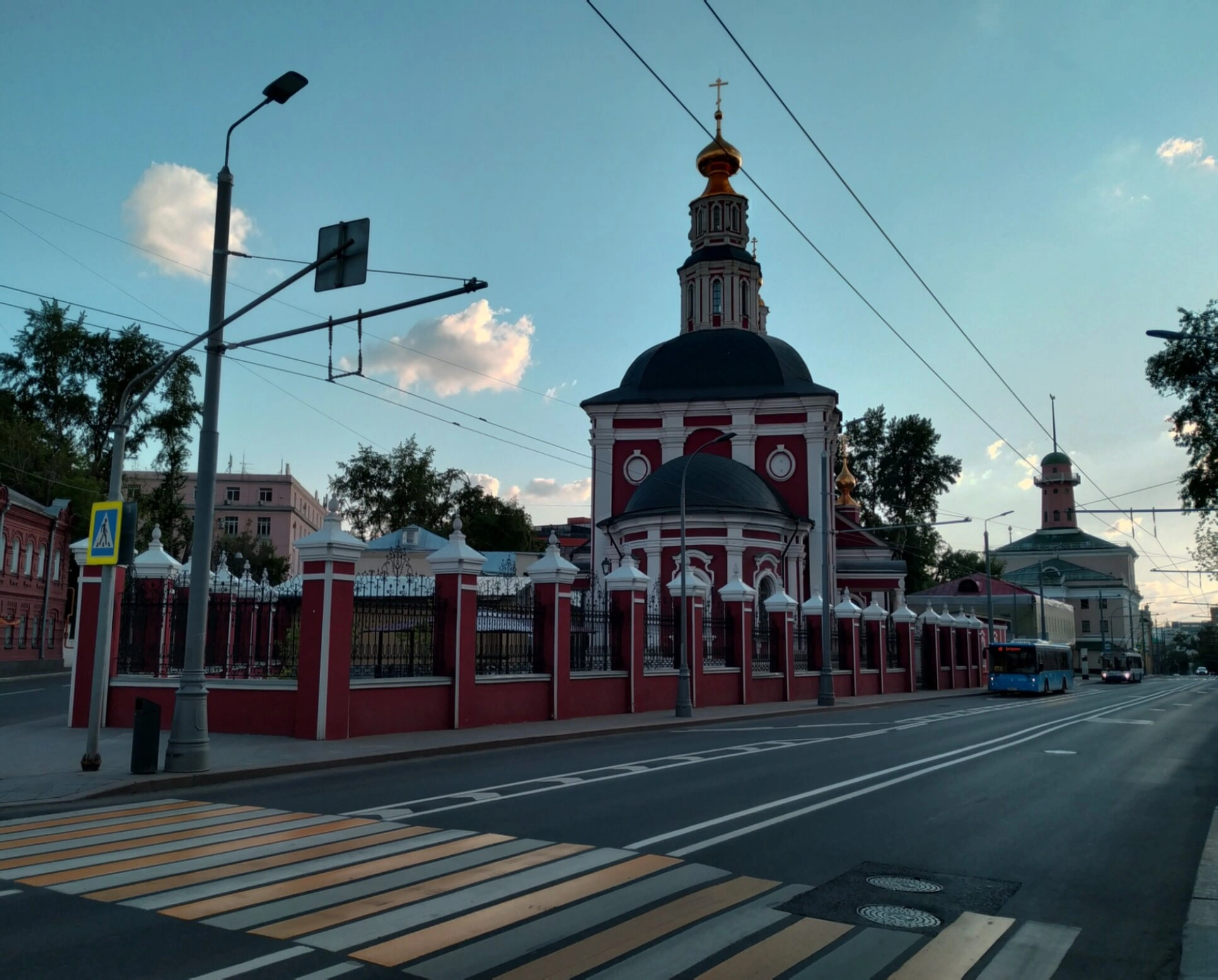 На представленной фотографии запечатлен храм во имя святителя Алексия, митрополита Московского, расположенный в исторической Рогожской слободе столицы. Святыня возвышается в Таганском районе Москвы, где издревле селились старообрядцы и ремесленники.