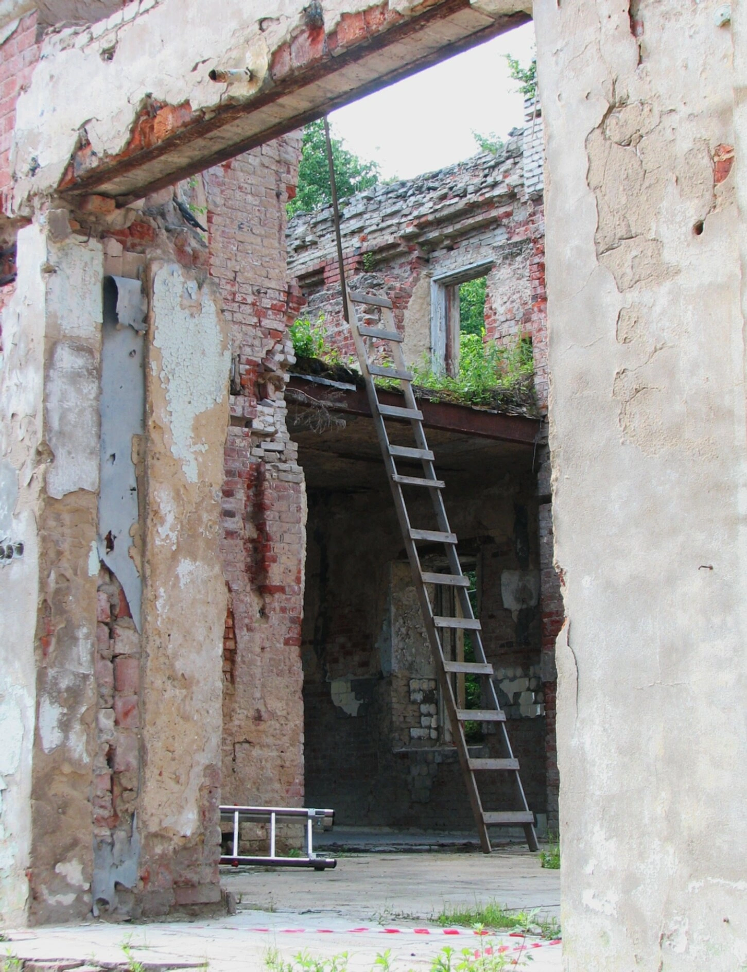 На фотографии запечатлен храм святителя Николая Чудотворца, расположенный в микрорайоне Ровки города Чехов. Это уникальный памятник православной архитектуры и истории, прошедший через многочисленные испытания времени. Здание находится в руинированном состоянии, на снимке видны массивные кирпичные стены, образующие восьмиугольник в плане, характерный для архитектурного решения начала XX века.