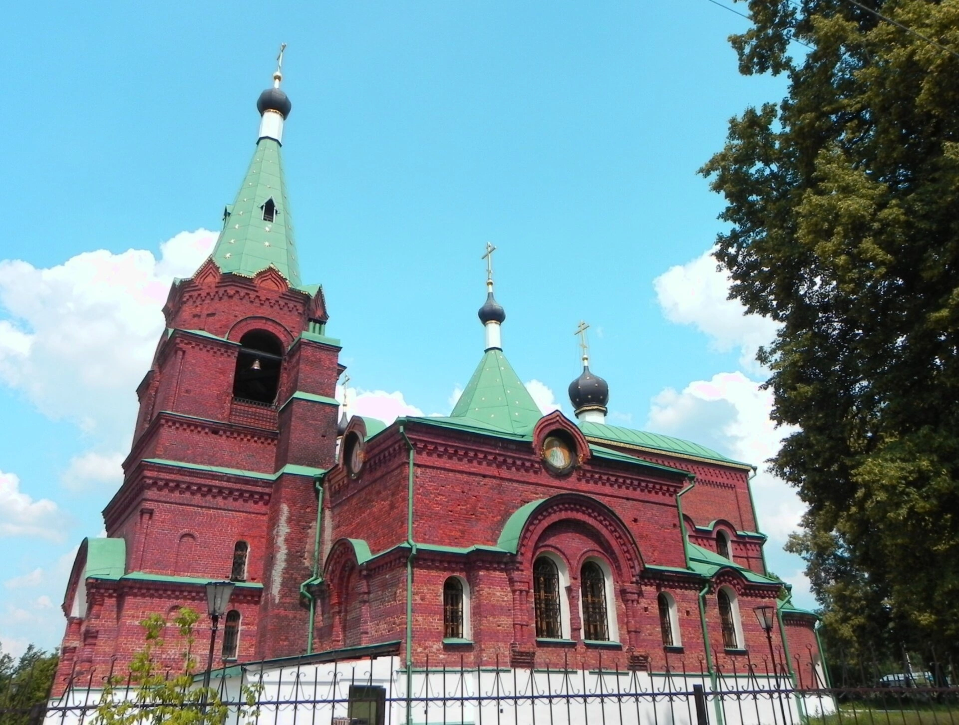 Храм стоит под сенью ясного небесного свода, что символизирует его небесное покровительство. Рядом с домом Божиим виднеется могучая зелёная крона дерева, подчёркивающая уединённость и мирный характер святого места. Территория храма благоустроена и ограждена аккуратной белой оградой, обозначающей рубеж между мирской суетой и пространством молитвы.
