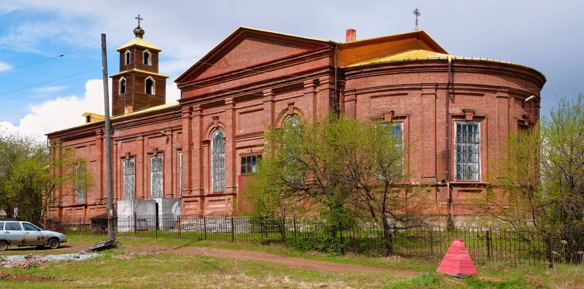 Здание церкви, выполненное из красного кирпича, представляет собой прекрасный образец русского храмового зодчества. Его венчают сияющие на солнце золочёные купола, увенчанные православными крестами. Высокая многоярусная колокольня с остроконечным шпилем господствует над окружающим ландшафтом, призывая верующих к молитве. Полукруглая алтарная часть указывает на восток, согласно канонам церковного строительства.