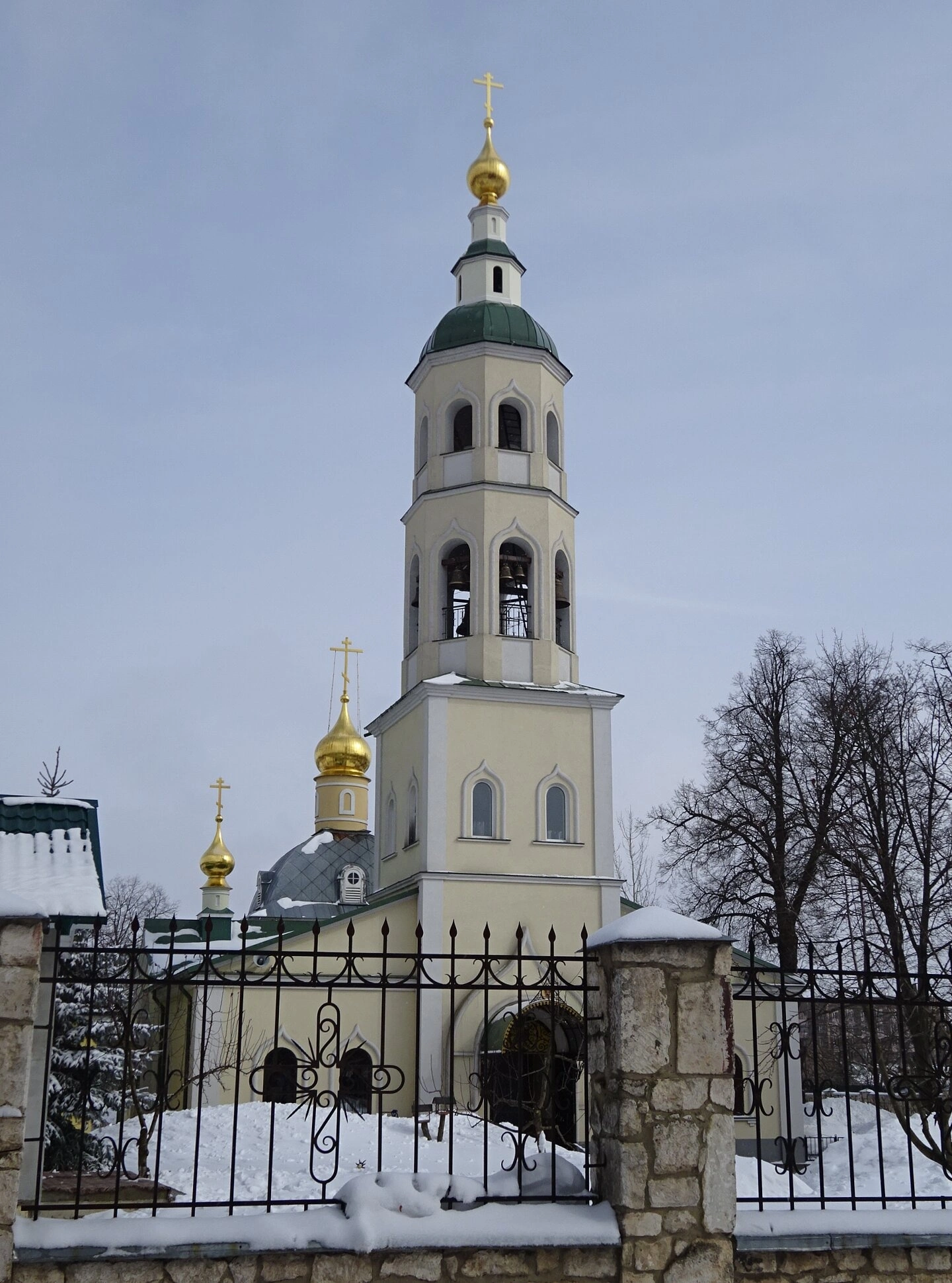 История этой святыни насчитывает несколько столетий. Изначально на этом месте существовал кладбищенский храм, возведённый примерно в 1696 году при князе Голицыне. В годы гонений на Церковь, в 1936 году, здание было частично разрушено, а уцелевшие помещения использовались под мастерские и склад. В 1997 году полуразрушенный храм, у которого не было алтаря, звонницы и трапезной, был возвращён Русской Православной Церкви. К настоящему времени Никольский храм полностью восстановлен, к нему пристроены приделы в честь Казанской иконы Божией Матери и святителя Спиридона Тримифунтского, а также возведена колокольня, что мы и видим на снимке.