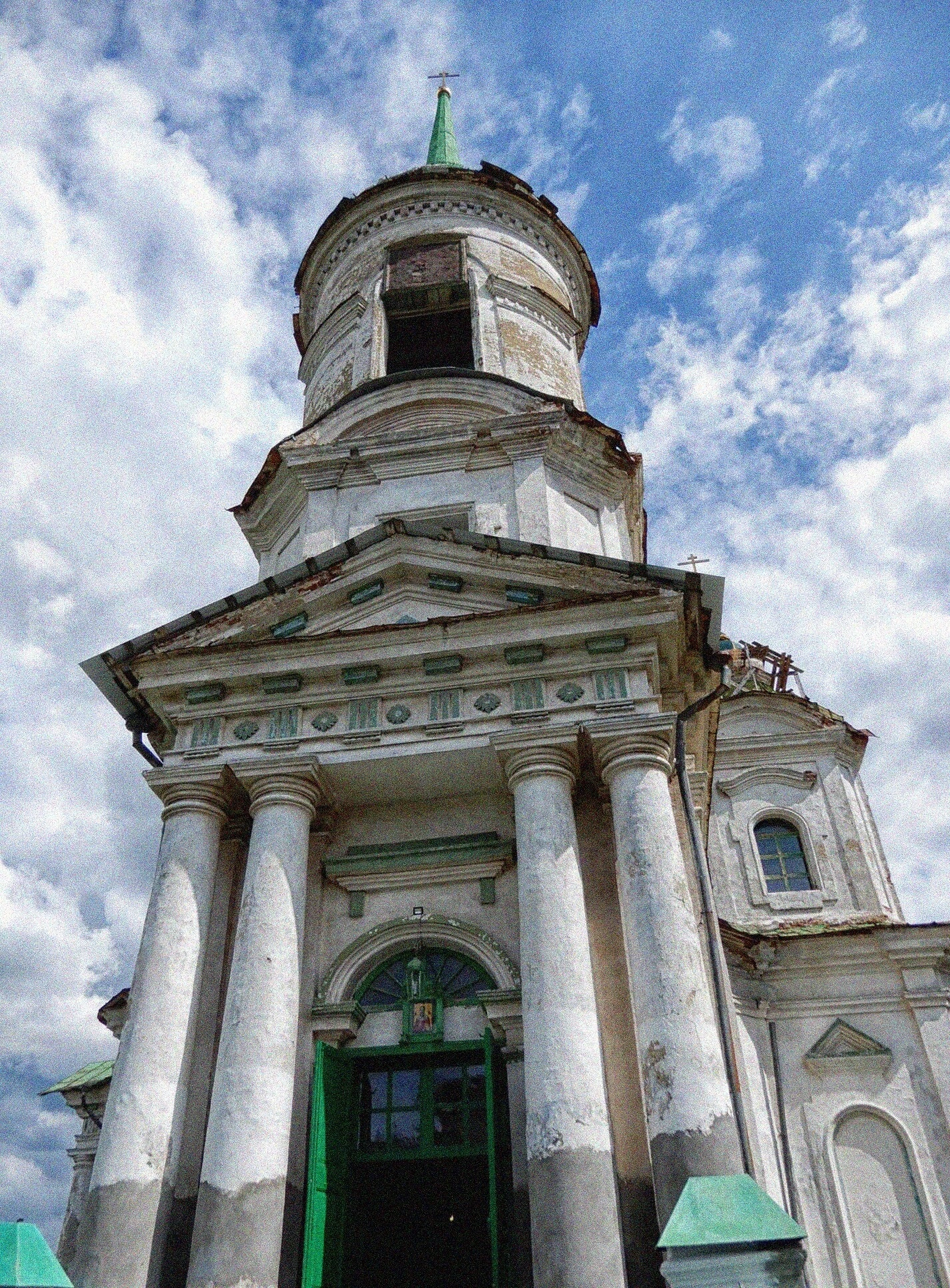 На представленной фотографии запечатлён старинный православный храм — Церковь во имя Святителя Николая Чудотворца, расположенная в селе Быньги Свердловской области. Этот величественный каменный трёхпрестольный храм, освящённый в 1871 году, является выдающимся памятником уральской храмовой архитектуры XIX века и объектом культурного наследия.