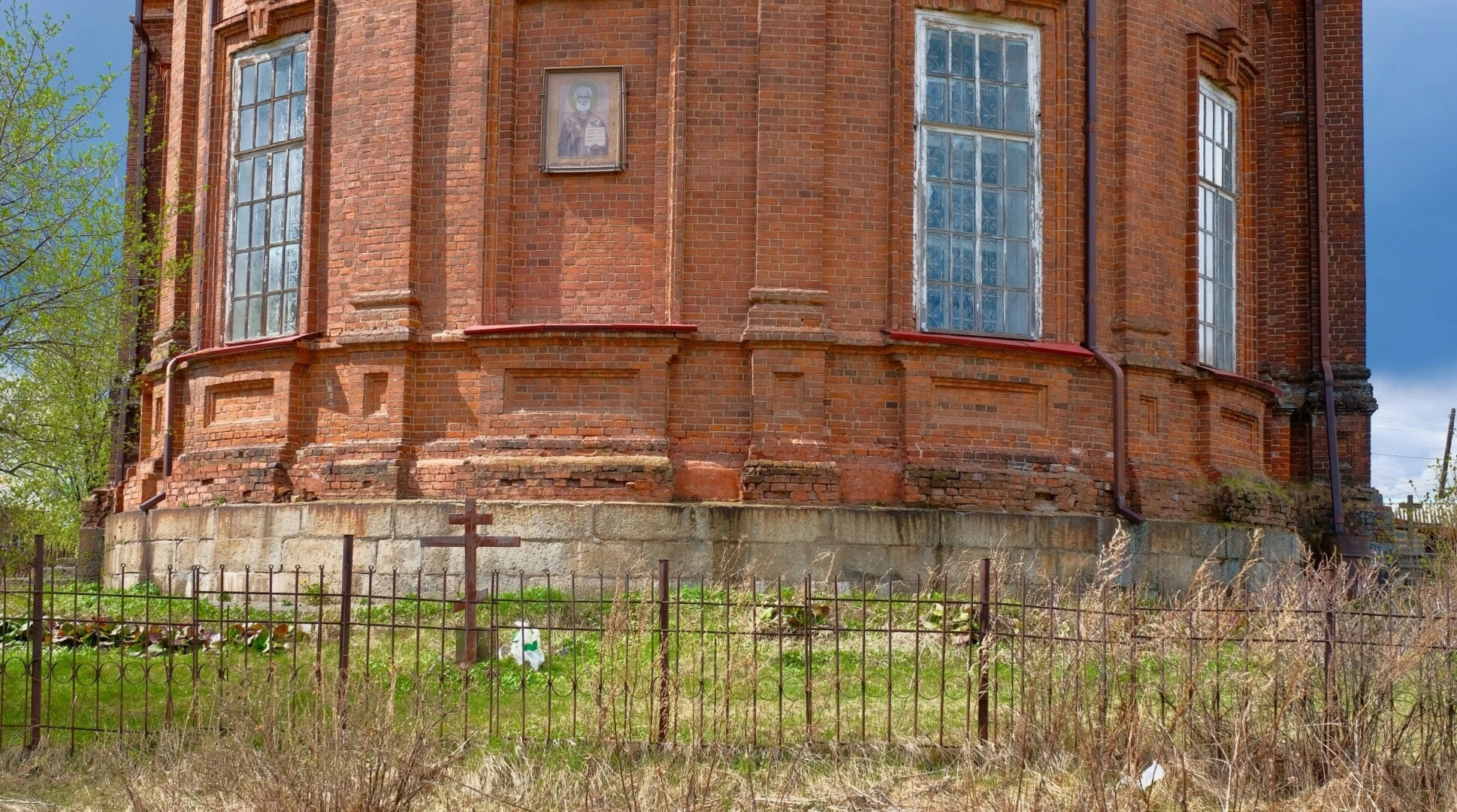 Рядом с храмом находится церковная ограда и памятный крест, свидетельствующий о наличии святого места, возможно, захоронения или места для молитвенного поклонения. Церковь находится в живописном месте, что подчёркивает её гармоничную связь с окружающим природным ландшафтом. Данный храм является не только памятником истории и культуры, но и действующим свидетельством веры многих поколений православных христиан.