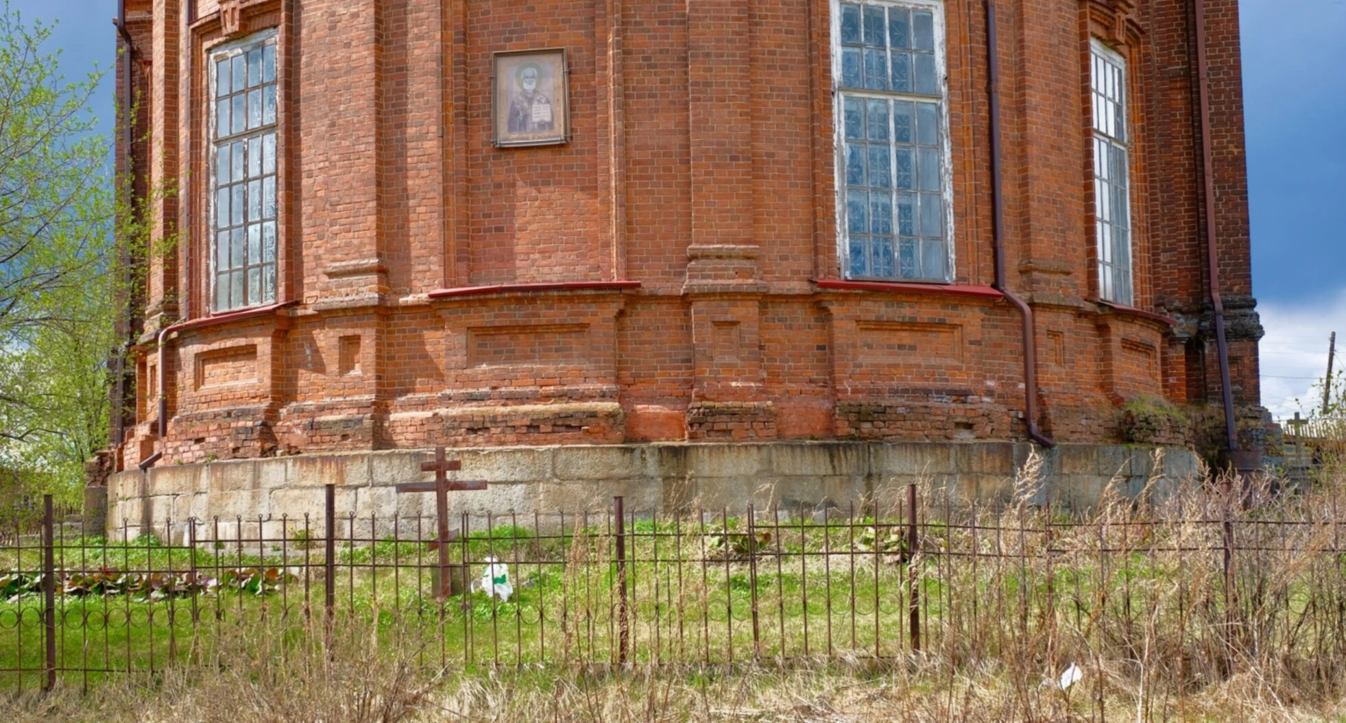 На представленной фотографии запечатлён старинный храм в честь Святителя Николая, Архиепископа Мир Ликийских, Чудотворца, расположенный в селе Ёлкино Свердловской области. Святыня, возведённая из красного кирпича, является образцом русского церковного зодчества конца XIX – начала XX века.