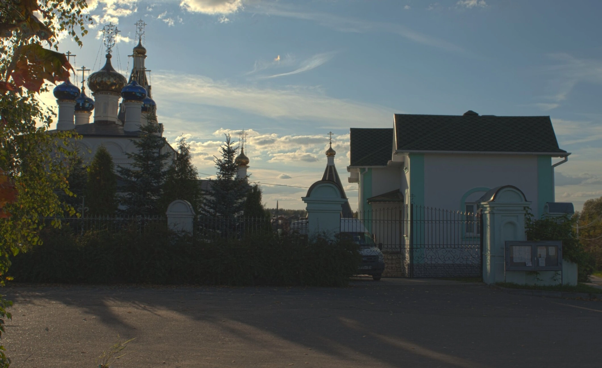 Фотография передаёт благолепие и умиротворённость, исходящие от этого святого места. Храм, окружённый скромным сельским пейзажем, стоит как твердыня веры, напоминая о вечных ценностях и непреходящей красоте православной духовности.