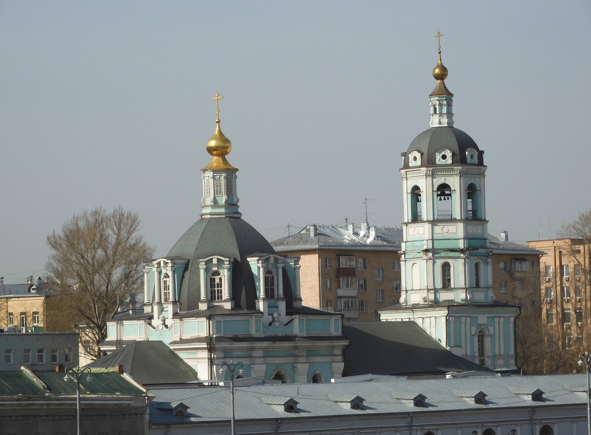 На представленной фотографии запечатлен величественный православный храм во имя Святителя Николая Чудотворца, что в Заяицком. Святыня расположена в историческом центре Москвы, во 2-м Раушском переулке, и является выдающимся памятником церковной архитектуры середины XVIII столетия.