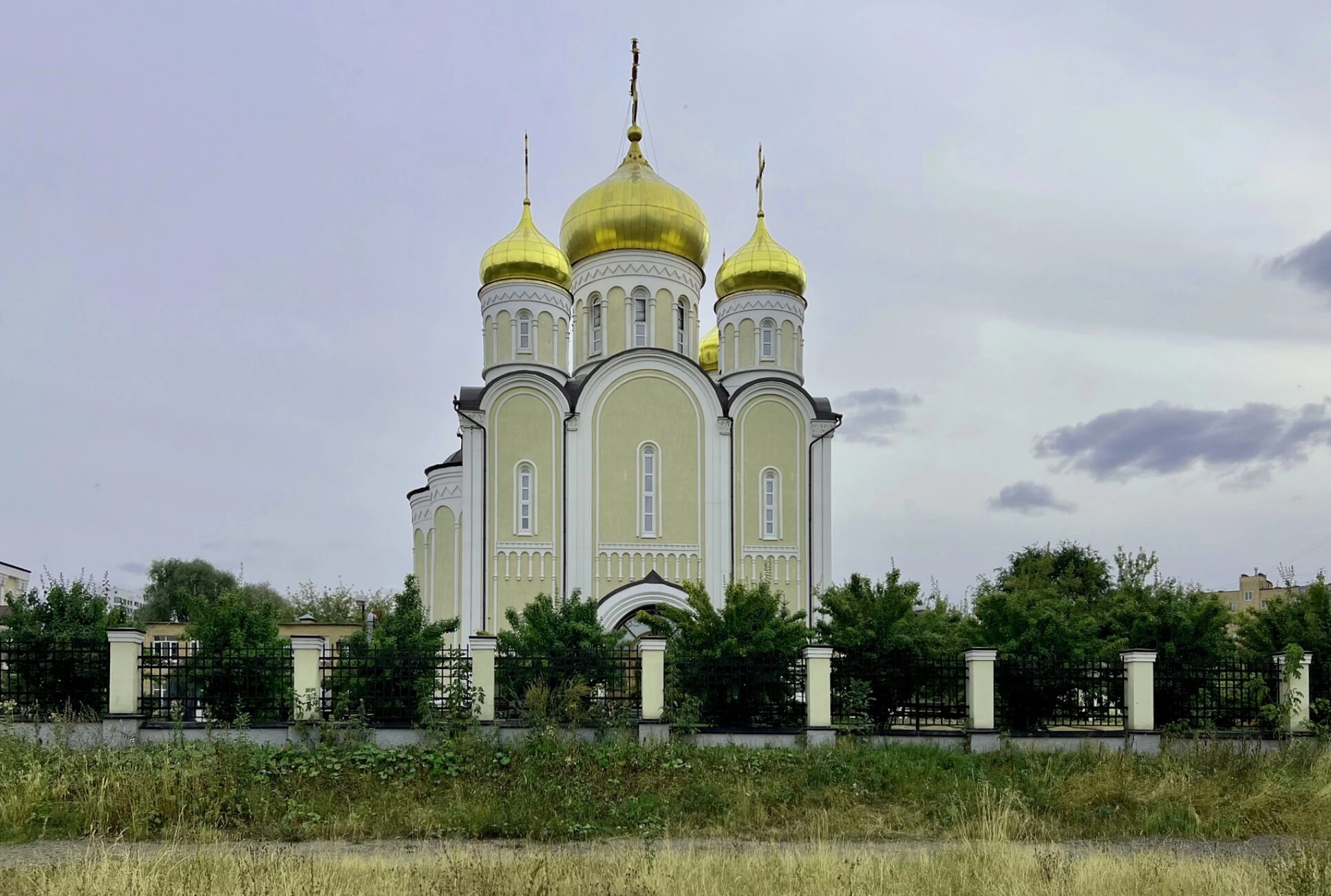 На снимке хорошо просматривается монументальный объём четверика, увенчанного пятиглавием, что символизирует Господа Иисуса Христа и четырёх евангелистов. Фасад украшен аркатурно-колончатым поясом и узкими арочными окнами, создающими ощущение лёгкости и устремлённости ввысь. Рядом с главным входом располагается высокая колокольня, завершающая архитектурный ансамбль.