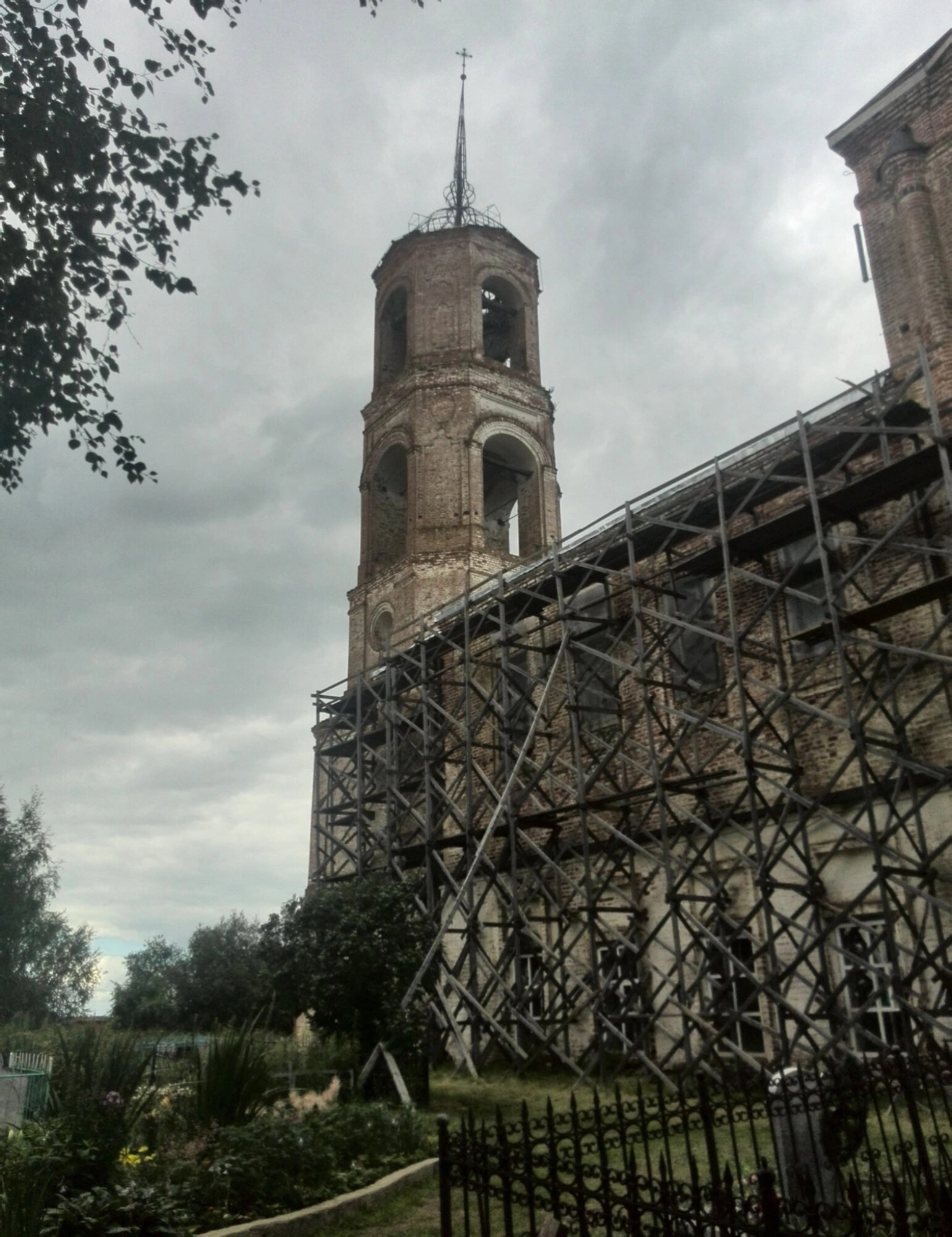 В годы гонений на Церковь, в 1937-1938 годах, с храма были сброшены колокола, разрушено входное крыльцо и разграблено церковное имущество. В 1940-е годы церковь была упразднена и использовалась в качестве складского помещения. Значительный ущерб святыне нанёс пожар 1977 года, в результате которого полностью выгорел деревянный пол второго этажа и все деревянные конструкции памятника. На фотографии видны следы этих разрушений, а также ведущиеся восстановительные работы, которые активно продолжаются с 2007 года.
