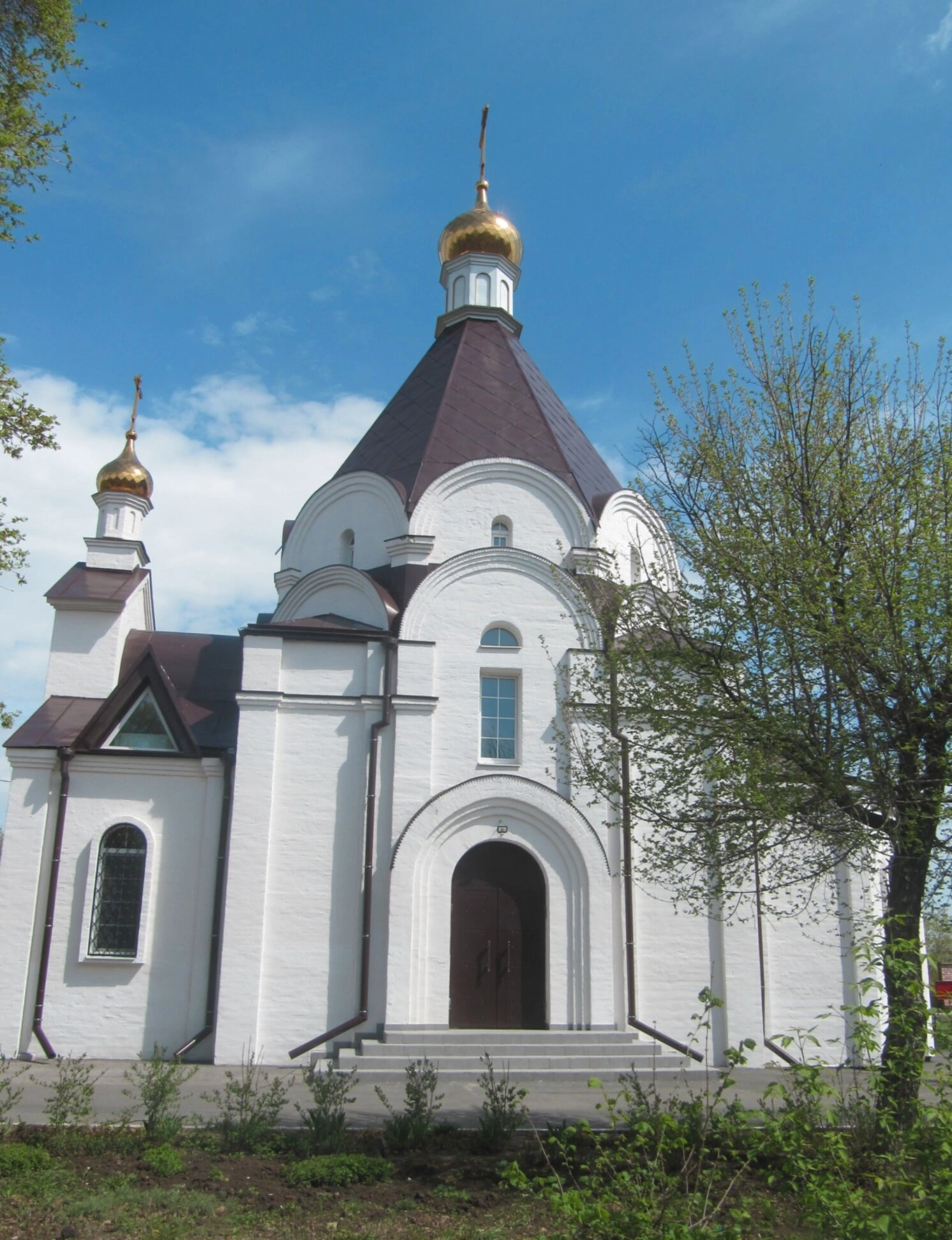 Храм представляет собой белое кирпичное строение под тёмной кровлей. Его венчают два золоченых купола: крупный центральный, возвышающийся над основным объёмом, и меньший, расположенный над звонницей. Главный фасад украшен арочным входом и высоким узким окном над ним, а декоративные элементы выполнены в традициях русского церковного зодчества.