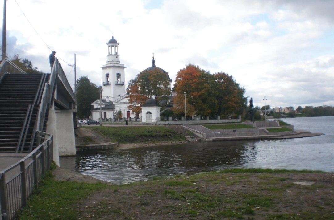 На фотографии запечатлён храм Святого благоверного князя Александра Невского, что возвышается на левом берегу реки Ижоры, в месте её исторического впадения в Неву. Эта православная святыня расположена в посёлке Усть-Ижора, на территории, освящённой подвигом русских воинов.