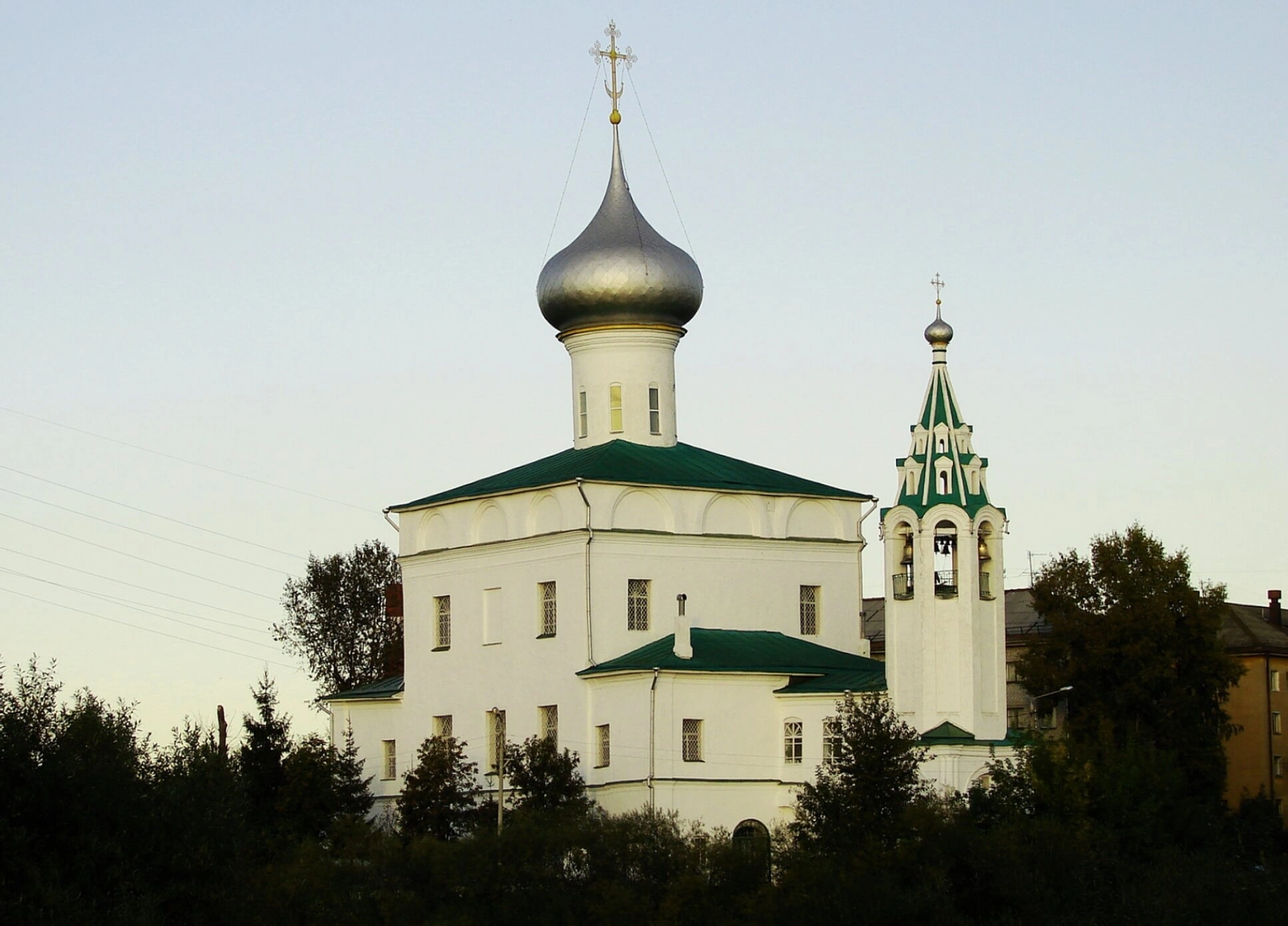 На фотографии запечатлена Церковь Андрея Первозванного, что во Фрязинове, — один из древнейших православных храмов Вологды, расположенный на левом берегу реки Вологды по адресу: набережная VI Армии, 205. Это величественное каменное здание, история которого насчитывает более трёх столетий.