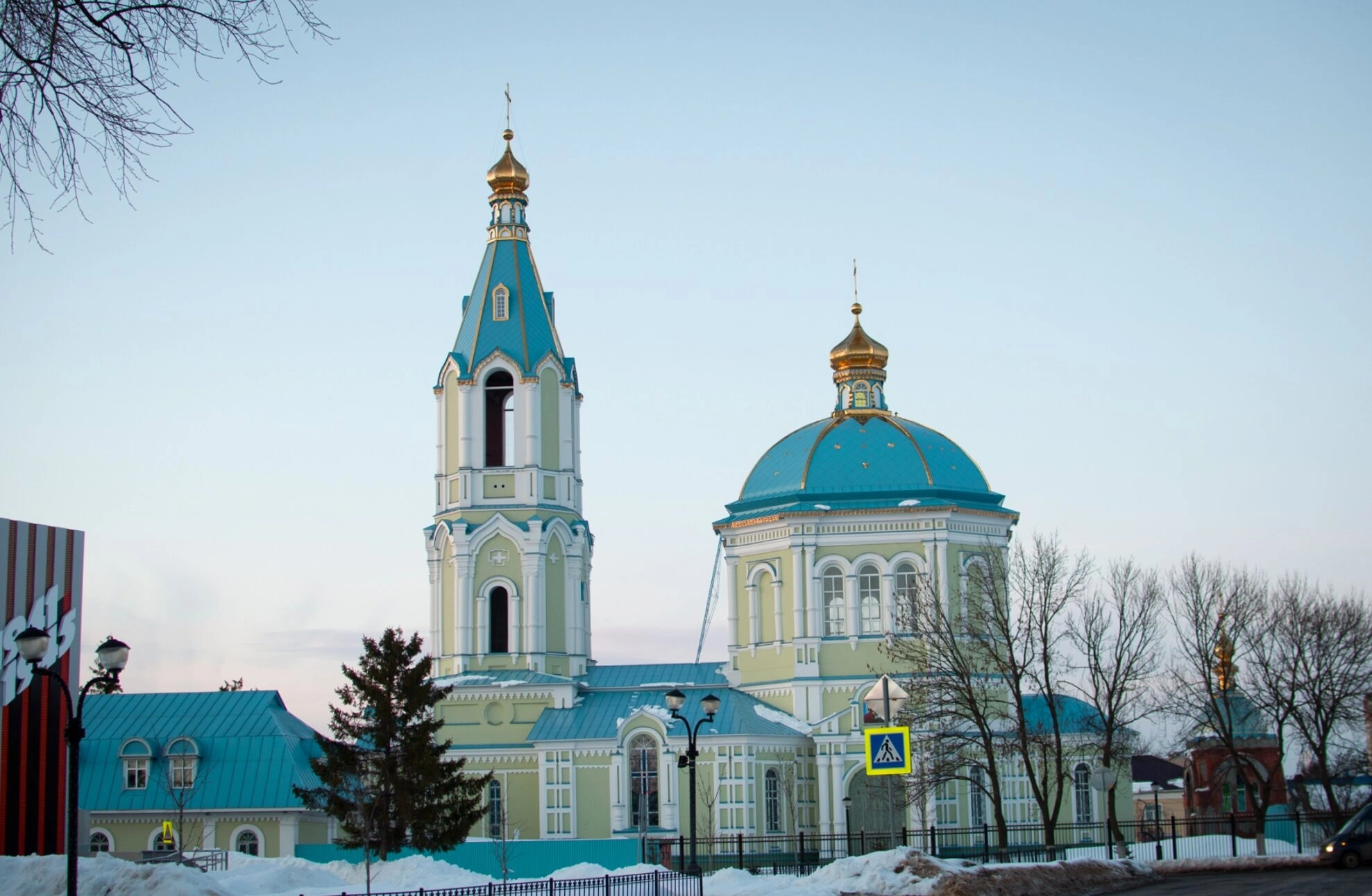 Строительство храма осуществлялось на средства прихожан и благотворителей с 1855 по 1879 год на месте обветшавшей деревянной церкви. Архитектурный облик здания соответствует русско-византийскому стилю, характерному для церковного зодчества периода эклектики. Комплекс включает в себя основной объём, увенчанный мощным световым барабаном с куполом, трапезную часть и восстановленную многоярусную колокольню со шпилем, которая играет важную роль в формировании силуэта города.