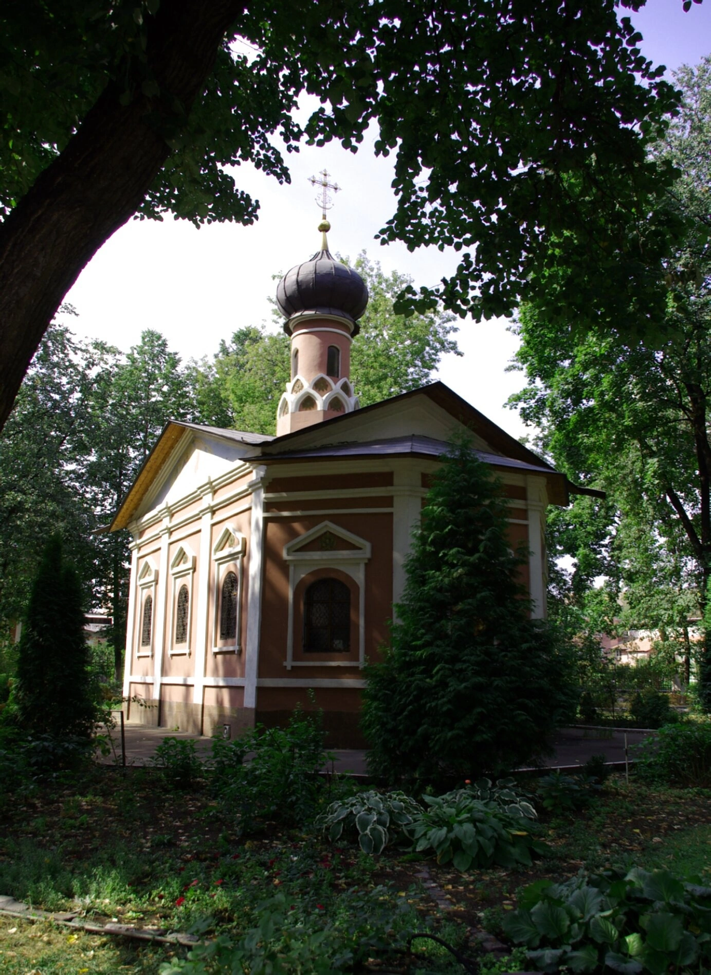 На представленной фотографии запечатлён храм в честь святого благоверного великого князя Александра Невского, расположенный в северо-западной части территории Донского ставропигиального мужского монастыря в Москве. Церковь была сооружена в конце XIX века и освящена в 1898 году. Она предназначалась для совершения богослужений в зимний период, поэтому также известна как тёплый храм монастыря.