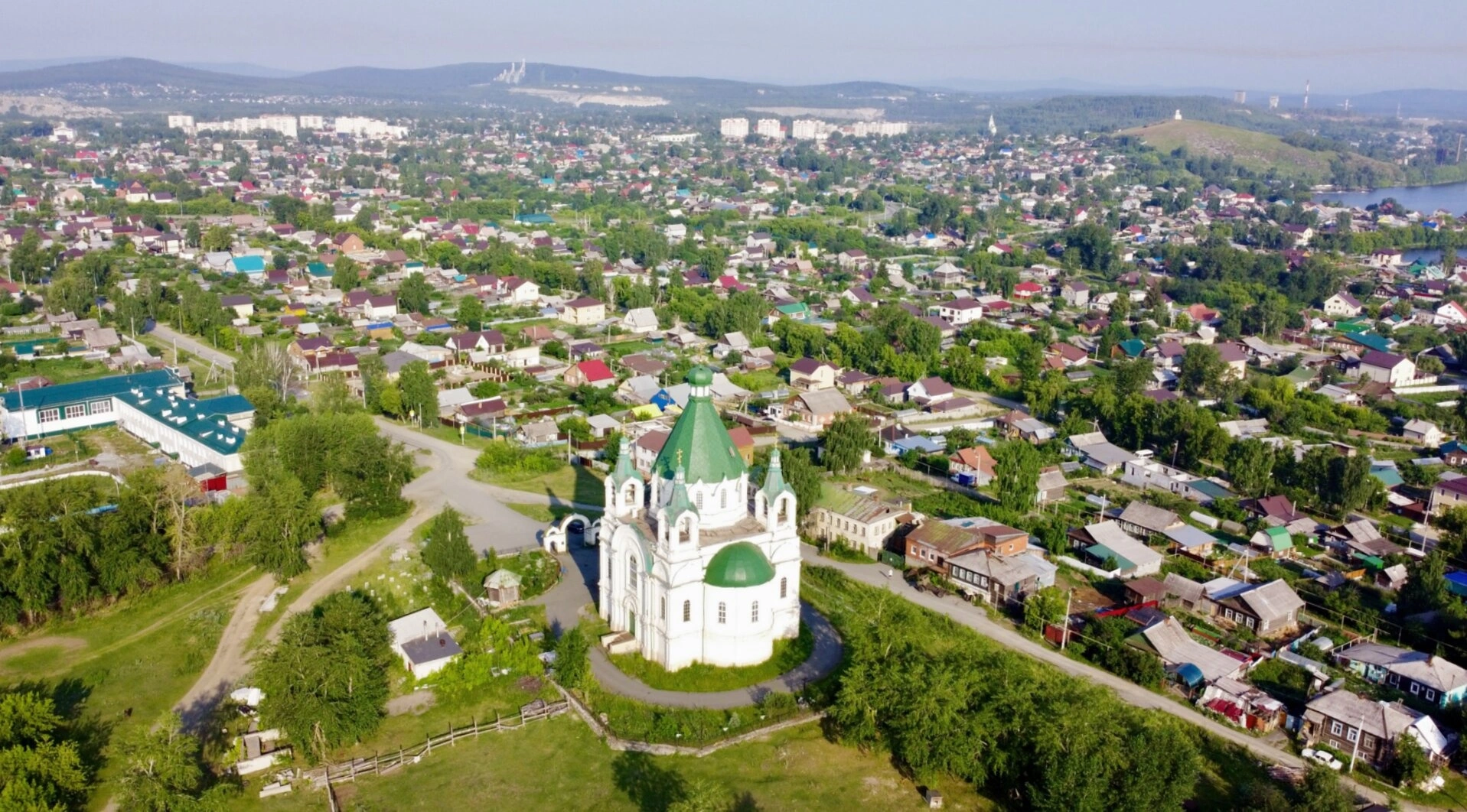 На фотографии запечатлён храм во имя Святого Благоверного Великого Князя Александра Невского, расположенный в городе Нижний Тагил. Святыня живописно возвышается на холме, что символизирует её духовное величие и стремление к горнему миру. Белоснежные стены церкви и сияющие на солнце зелёные купола создают яркий образ, гармонично вписанный в окружающий ландшафт.