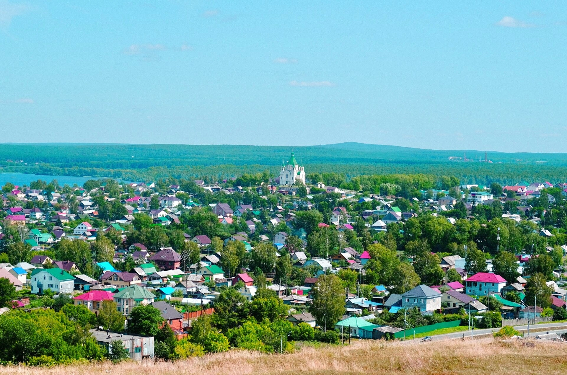 На представленной фотографии запечатлена панорама города Нижний Тагил с величественным храмом во имя святого благоверного князя Александра Невского, занимающим центральное положение в композиции. Свято-Александро-Невский храм, расположенный в историческом центре города на берегу Тагильского пруда, является одной из главных православных святынь и архитектурных доминант Нижнего Тагила.