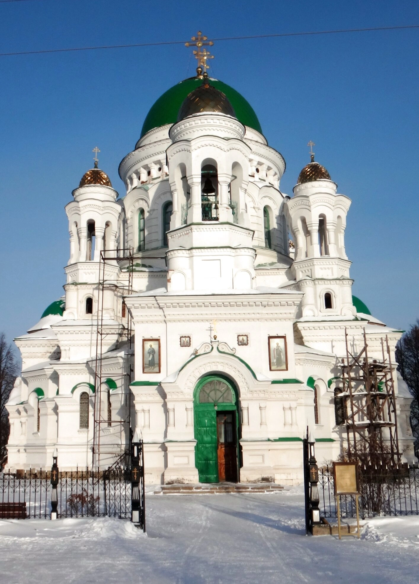 На фотографии запечатлён величественный вид храма во имя святого благоверного великого князя Александра Невского, расположенного в городе Нижняя Салда Свердловской области. Святыня, укутанная зимним снежным покровом, предстаёт в ореоле благодати и спокойствия. Белоснежные стены храма символизируют духовную чистоту и непорочность, а зелёные купола, увенчанные сияющими золотыми крестами, устремляются к небесам, напоминая о вечной жизни и надежде на спасение.