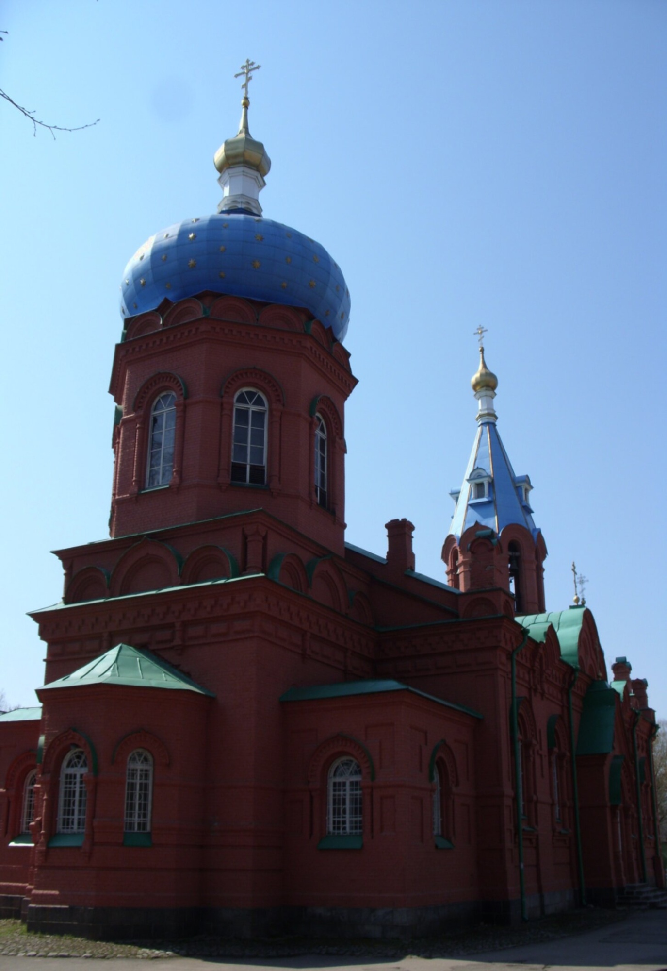 Архитектурный облик храма, возведённого из красного кирпича, является ярким образцом русского церковного зодчества рубежа XIX–XX столетий. Над основным объёмом горделиво возносится главный купол, окрашенный в лазурно-синий цвет и увенчанный золочёной главкой с водружённым на неё святым крестом. Рядом высится шатровая колокольня, также украшенная синей кровлей и золотым навершием, создавая гармоничную вертикальную доминанту. Кровли приделов и трапезной части имеют спокойный зелёный оттенок, что вкупе с кирпичными стенами и белоснежным оформлением арочных окон составляет стройную и благообразную цветовую гамму.