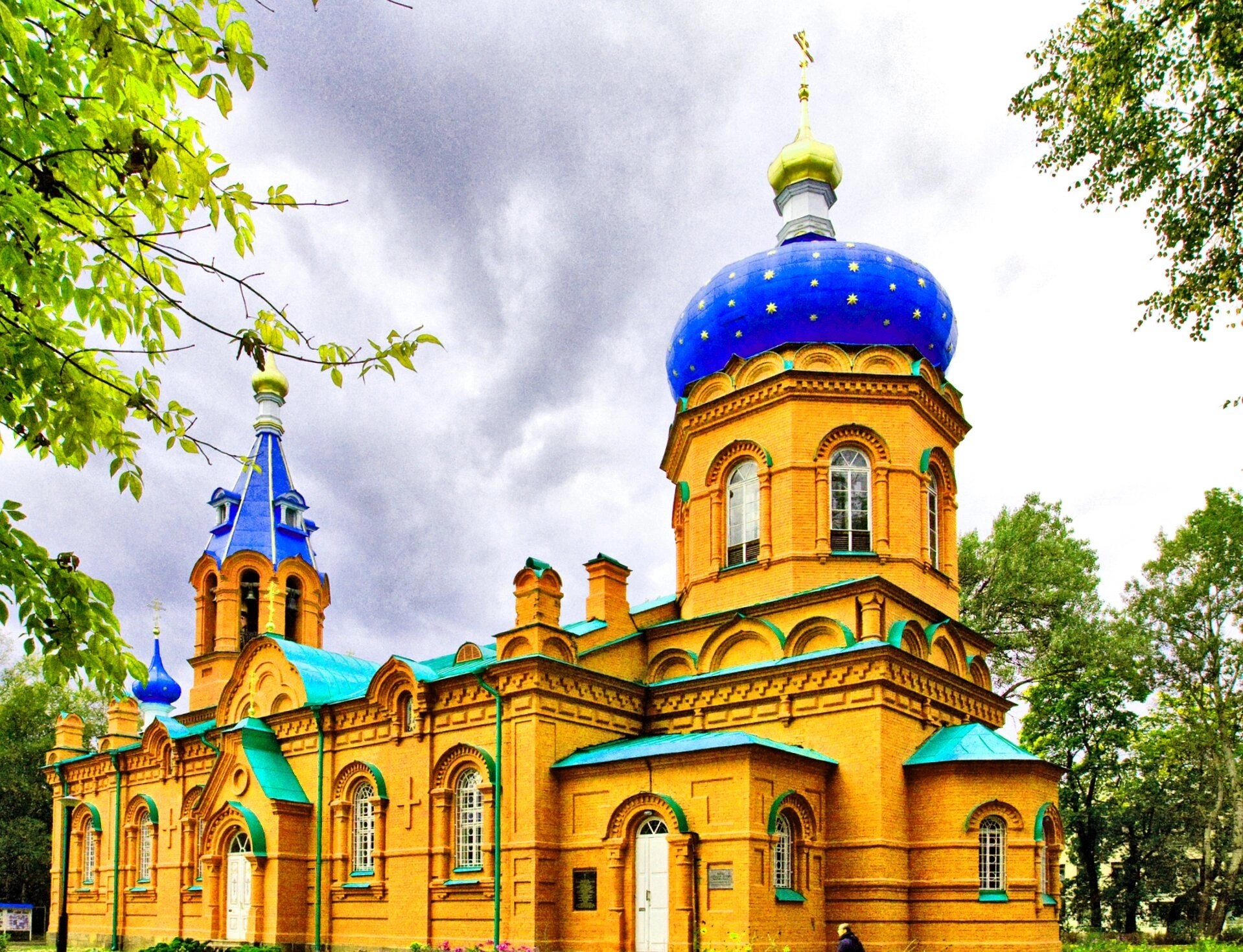 На фотографии запечатлён храм во имя Святого Благоверного Великого Князя Александра Невского — действующий православный храм в городе Пскове, являющийся памятником архитектуры начала XX века. Этот величественный пятиглавый собор был возведён в 1907–1908 годах для 96-го пехотного Омского полка, дислоцировавшегося в Пскове, и освящён в честь небесного покровителя русских воинов.