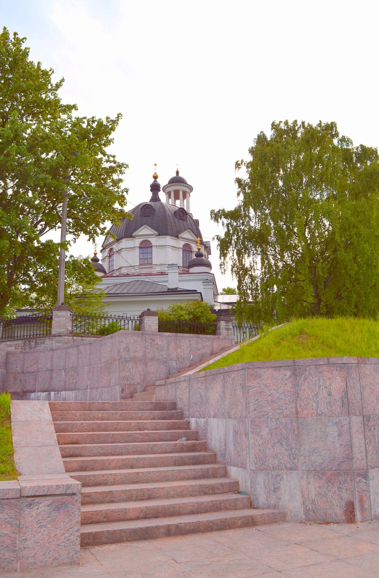 На фотографии запечатлён храм Святого благоверного князя Александра Невского, расположенный в историческом посёлке Усть-Ижора на левом берегу реки Ижоры, при впадении её в Неву. Это святое место обладает глубоким духовным и историческим значением для всей России, ведь именно здесь в 1240 году дружина под предводительством князя Александра Ярославича одержала знаменитую победу в Невской битве над шведскими войсками, за которую князь был прозван Невским.