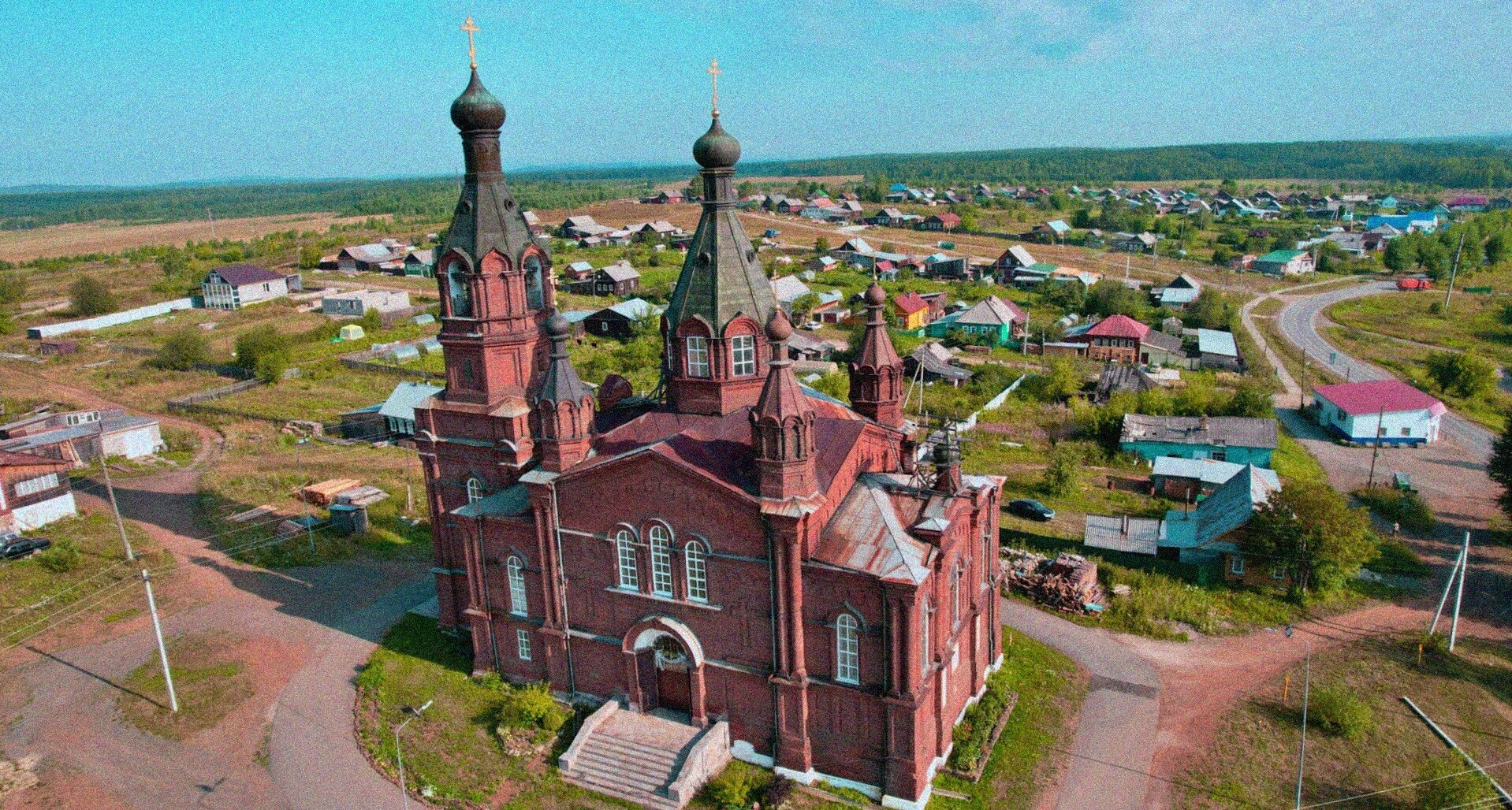 Окружающий пейзаж с жилыми домами и зелёными насаждениями говорит о том, что храм неразрывно связан с повседневной жизнью общины, являясь неотъемлемой частью её истории и культурного ландшафта. Фотография передаёт атмосферу тихого благочестия и уюта, свойственную малым городам России, где церковь остаётся местом молитвенного утешения и собирания верующих.